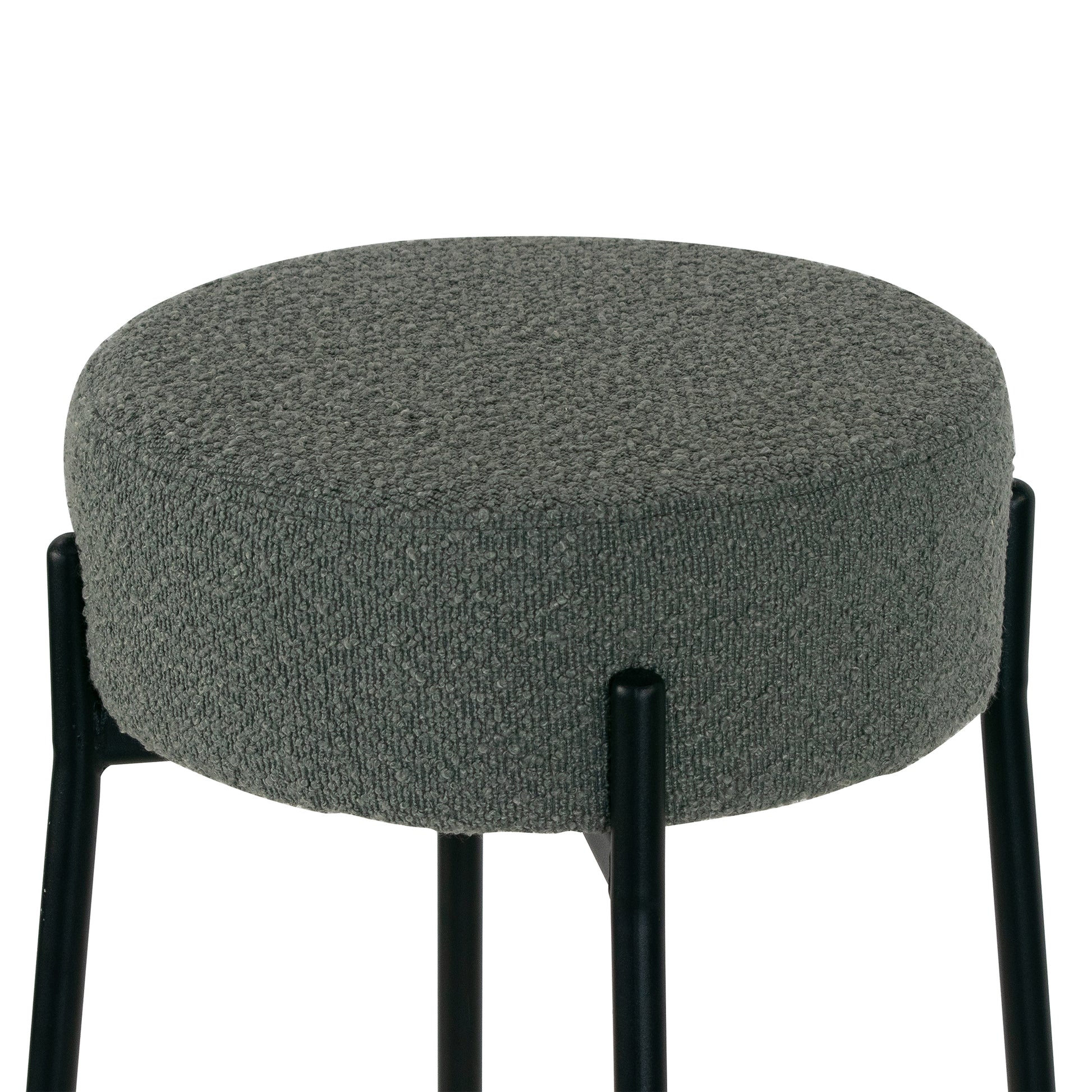 Set of 2 Avner Gray Boucle Backless Counter Stool with Black Metal Legs
