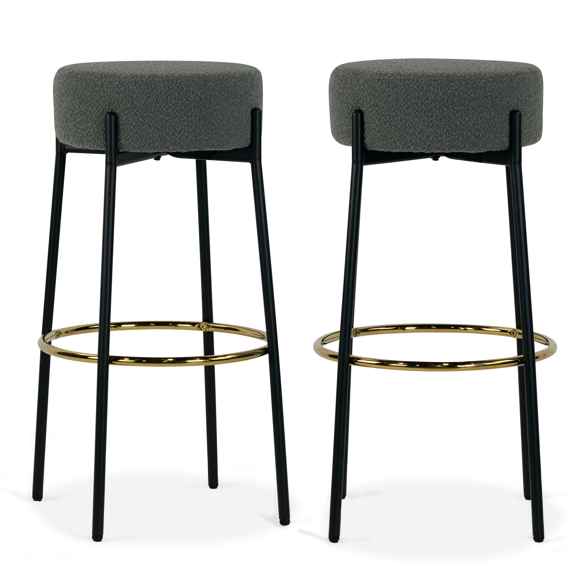 Set of 2 Avon Gray Boucle Backless Bar Stool with Black Metal Legs