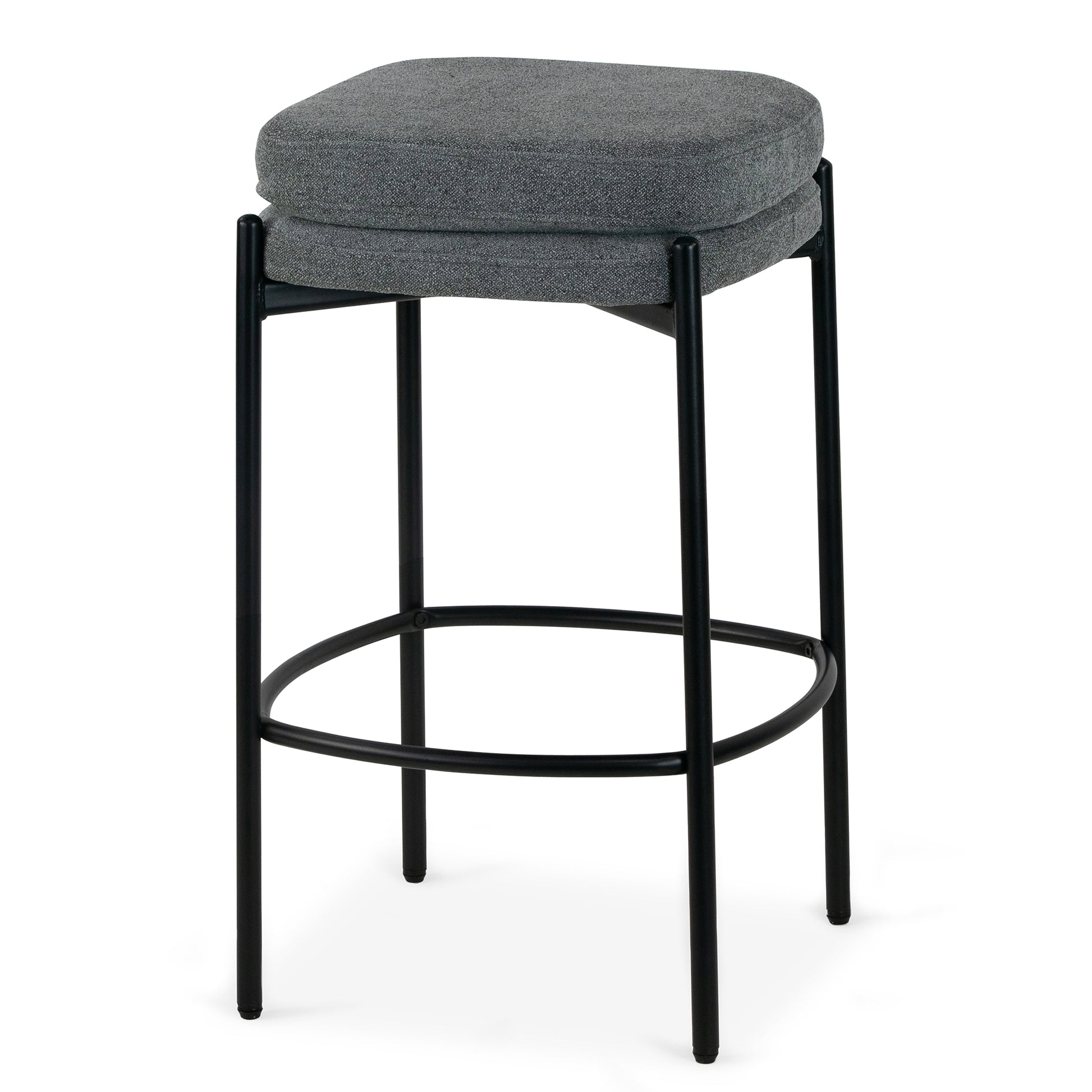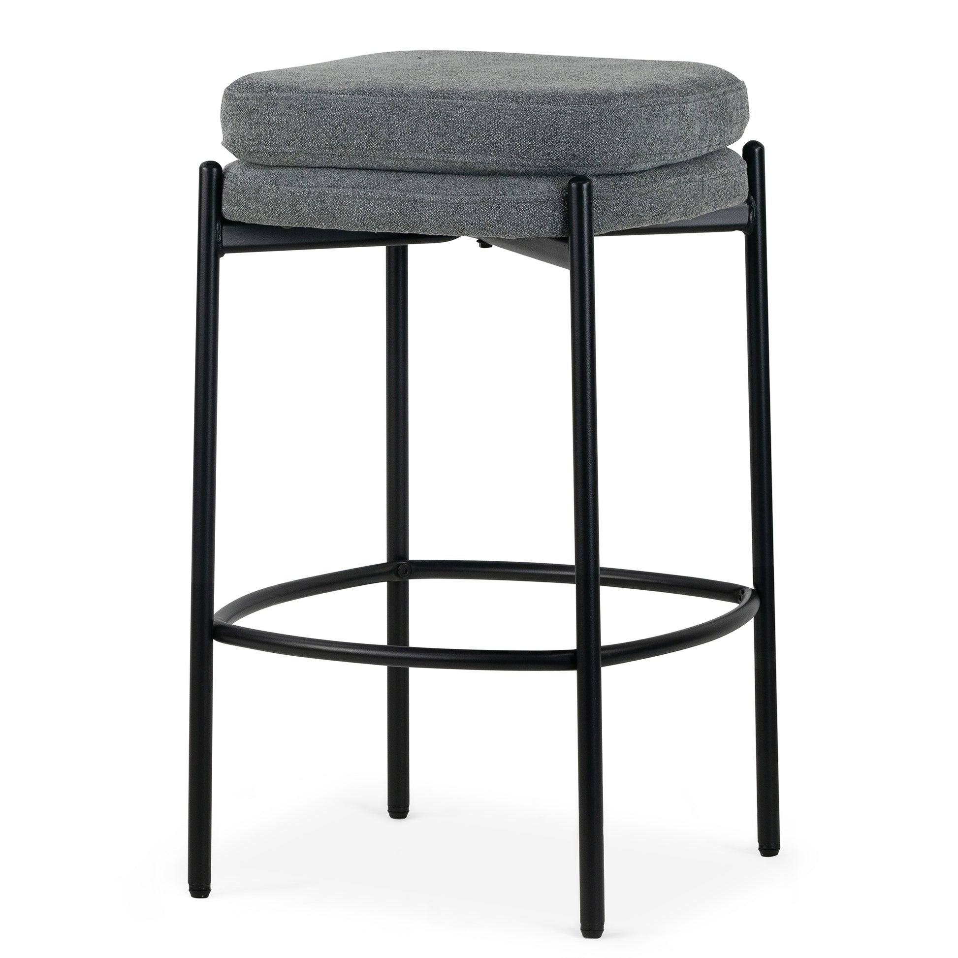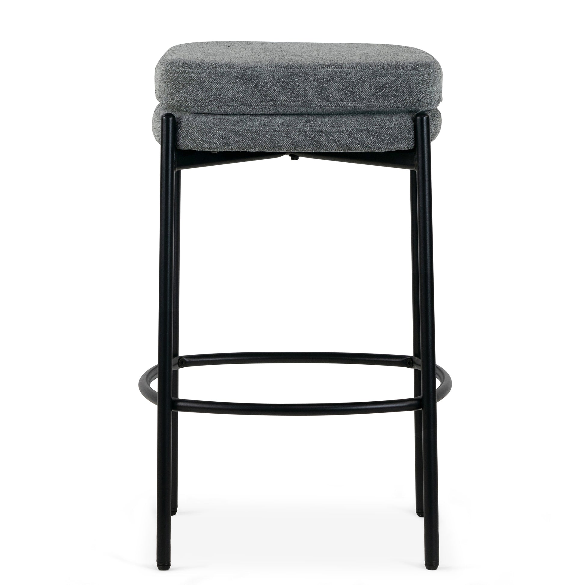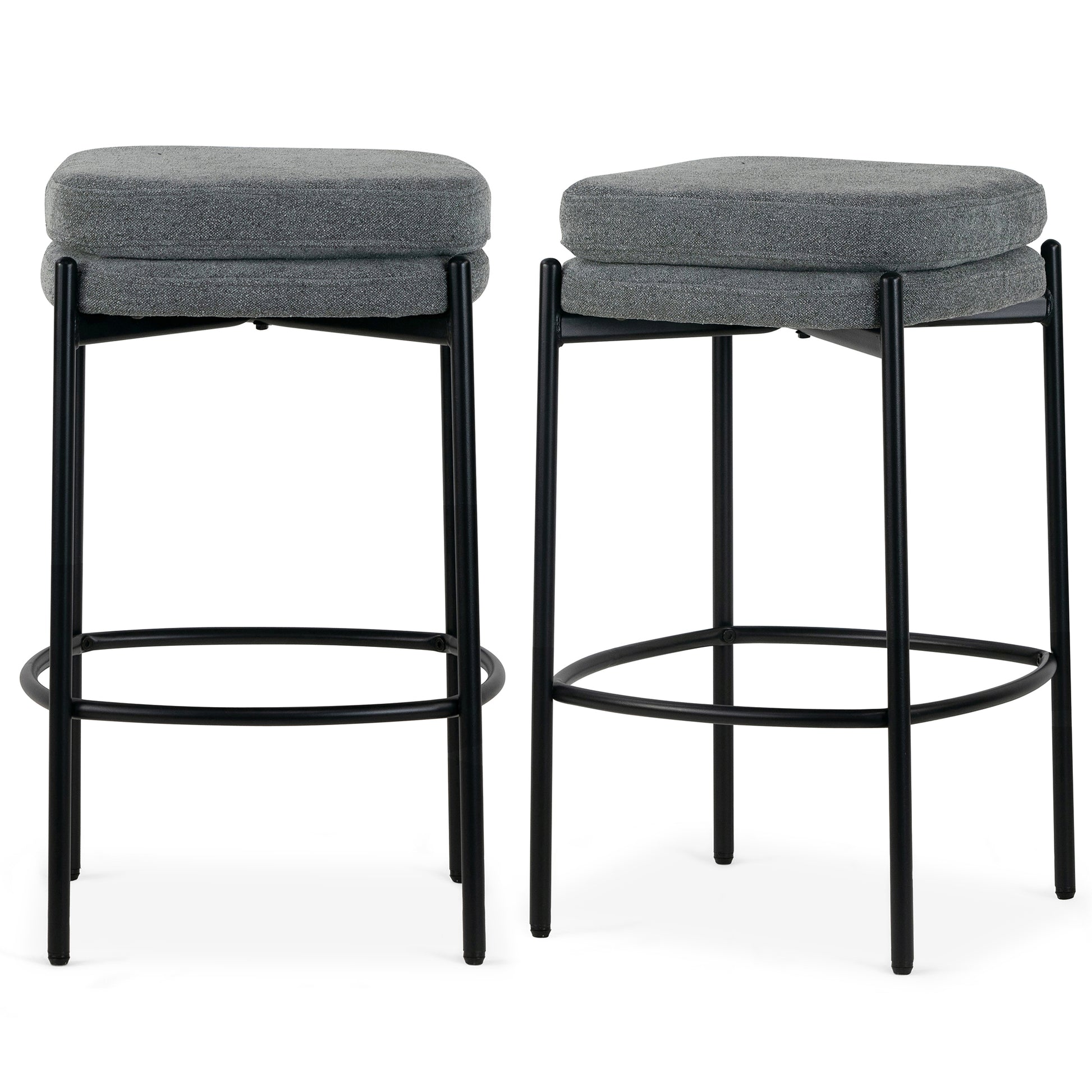 Set of 2 Avril Gray Boucle Backless Counter Stool with Black Metal Legs