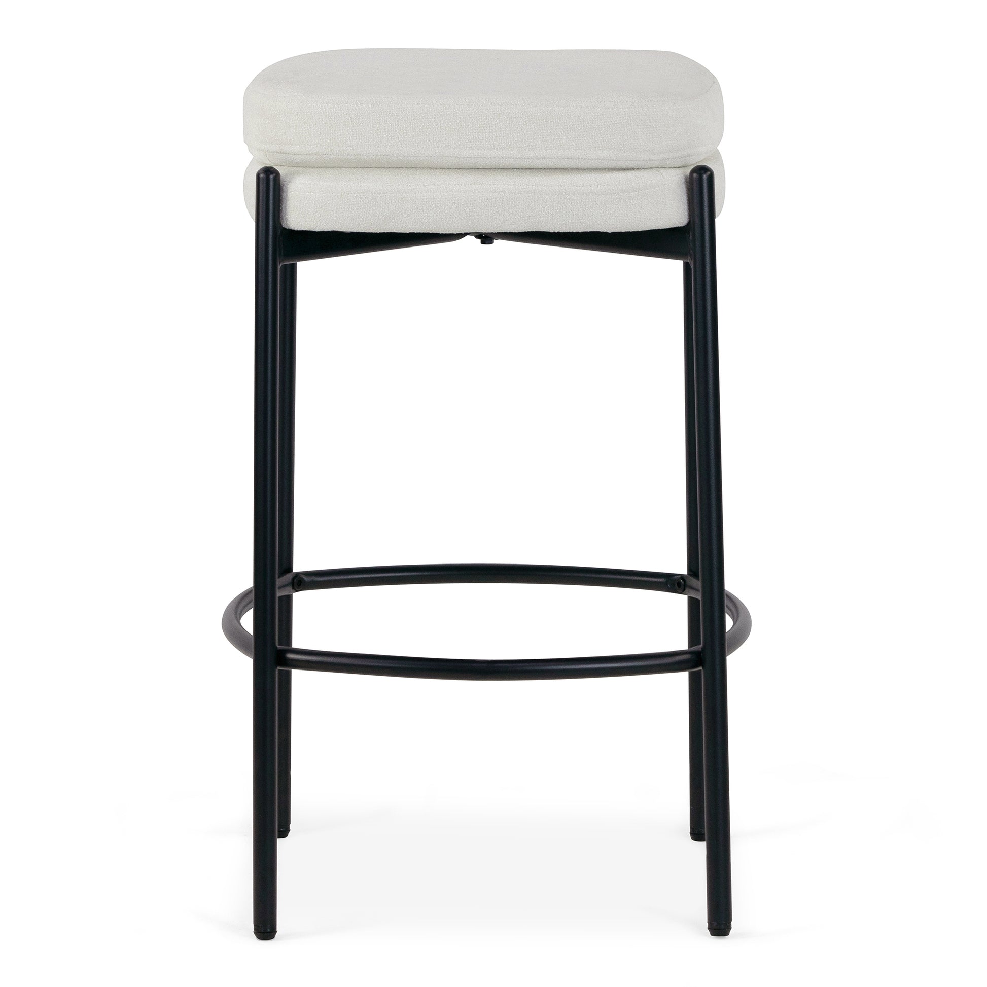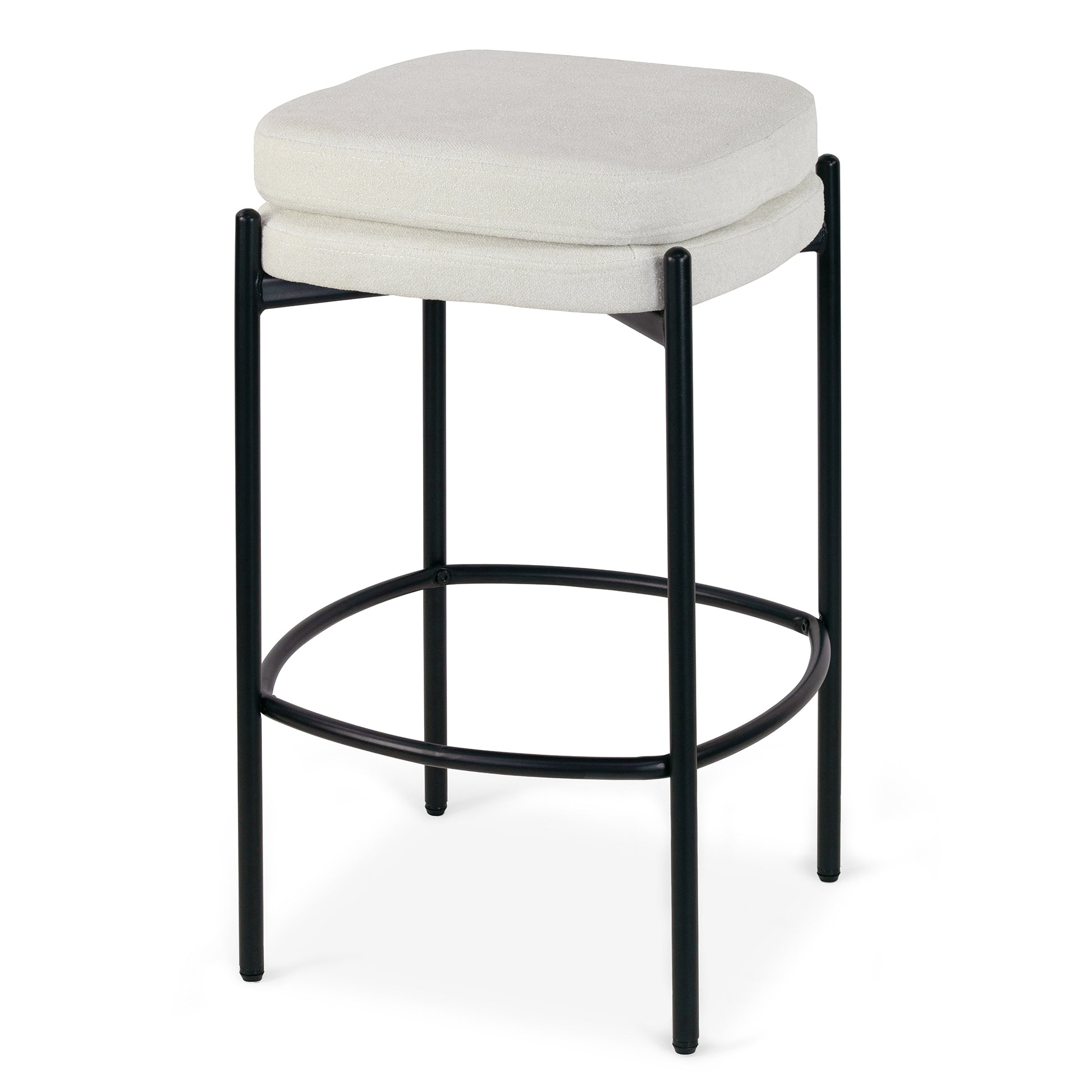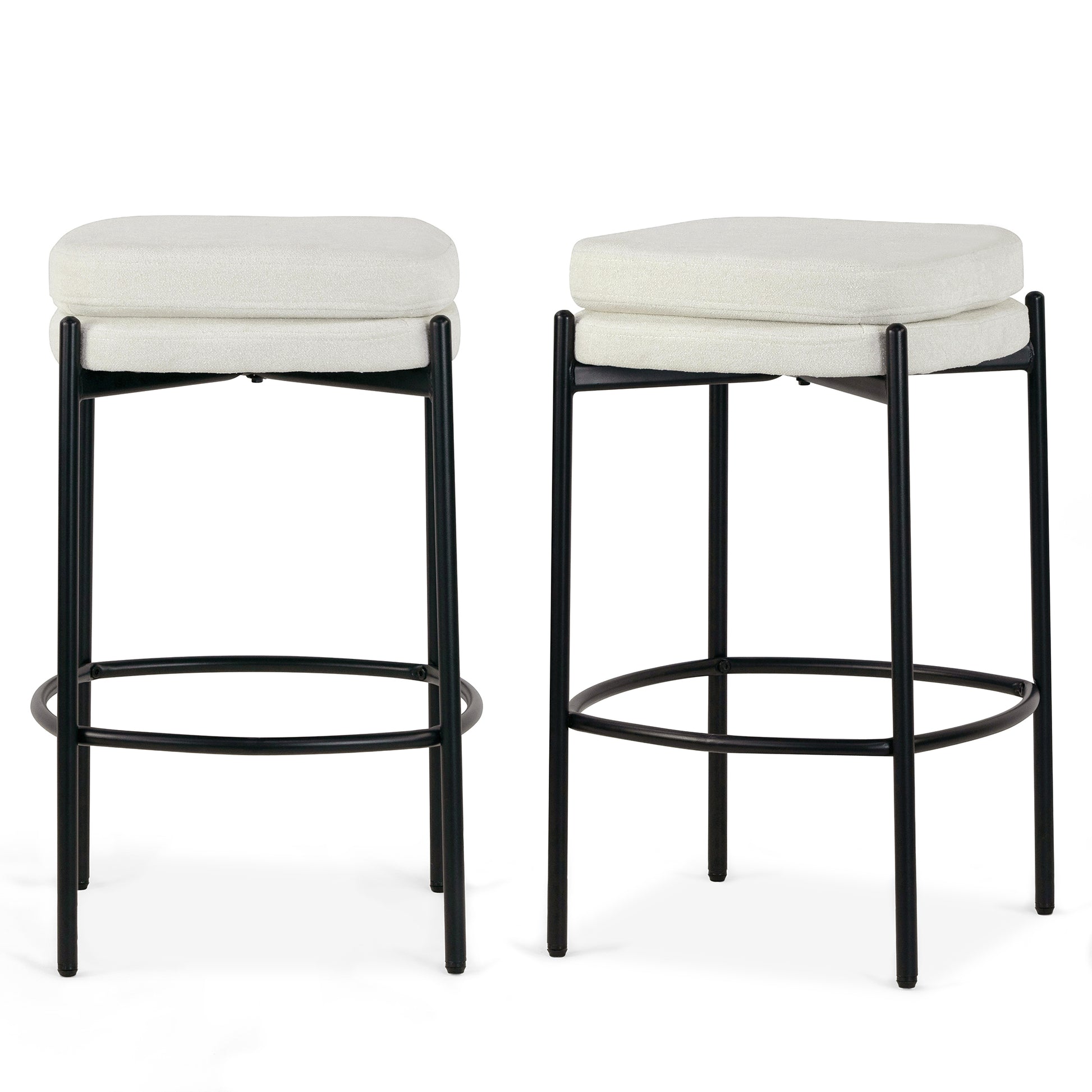 Set of 2 Avril White Boucle Backless Counter Stool with Black Metal Legs