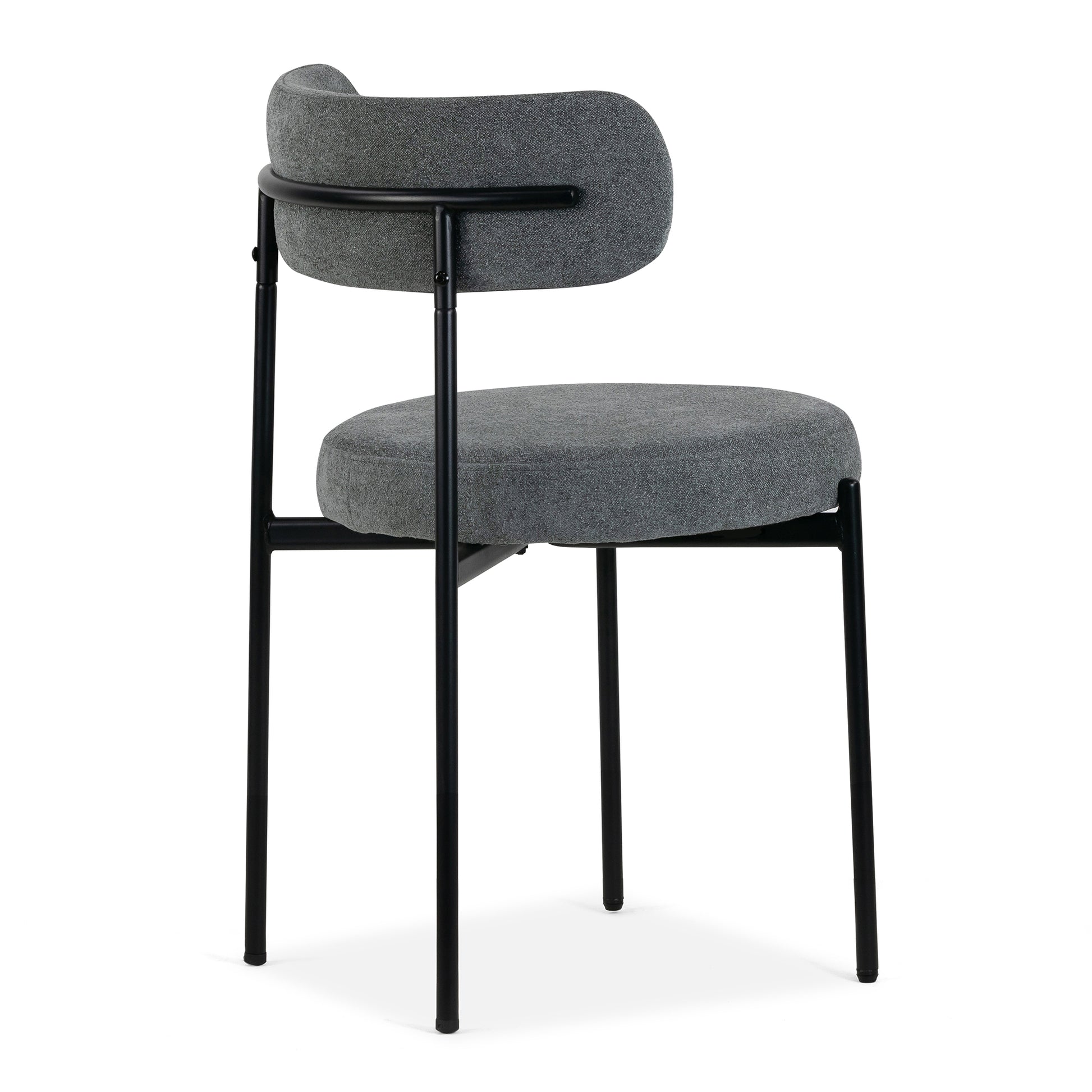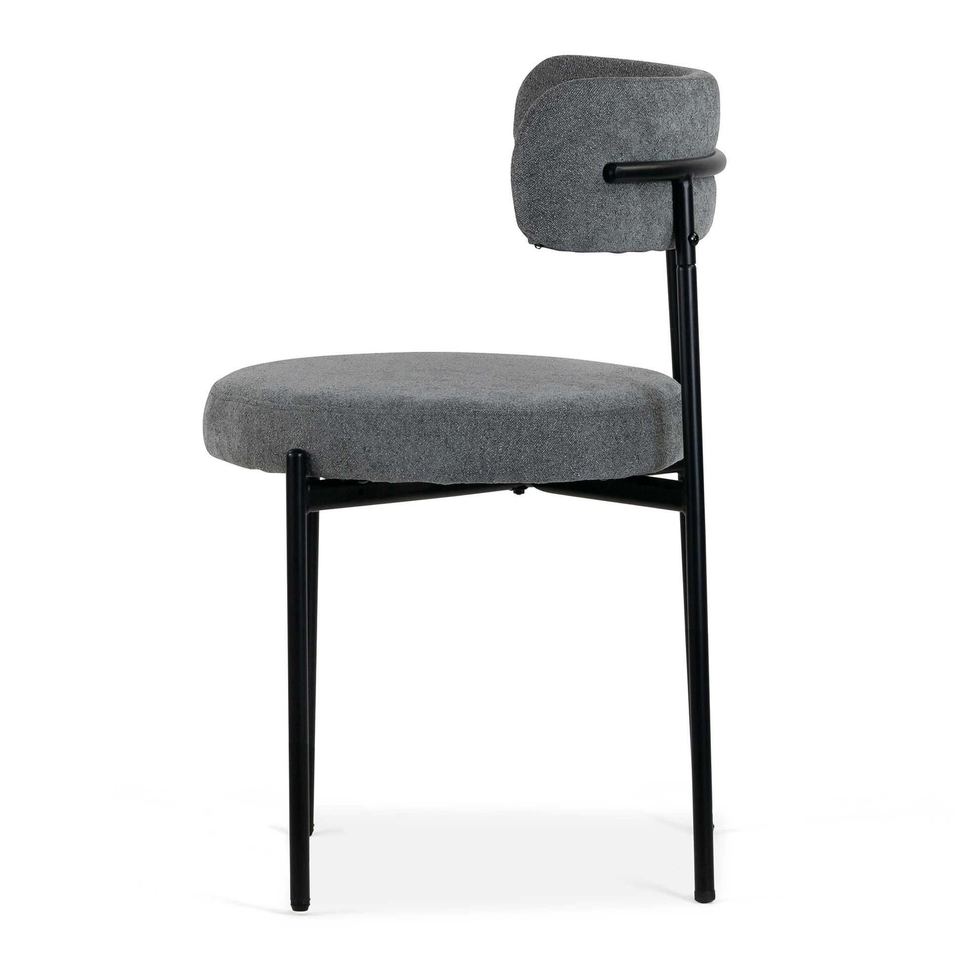 Introducing our Modern Gray Bouclé Dining Chair with Black Legs, a harmonious fusion of contemporary design and timeless elegance. This chair's minimalist yet striking profile features a gracefully curved backrest and a comfortably padded seat, all upholstered in luxurious gray bouclé fabric that exudes sophistication and invites tactile indulgence. The chair's sleek black metal legs provide sturdy support while adding a bold, modern contrast to the soft gray upholstery, making it a versatile and stylish addition to any dining space. Crafted for both comfort and durability, this chair ensures that every meal is a feast for the senses and a visual delight, enhancing the ambiance of your dining room with its understated yet impactful presence.