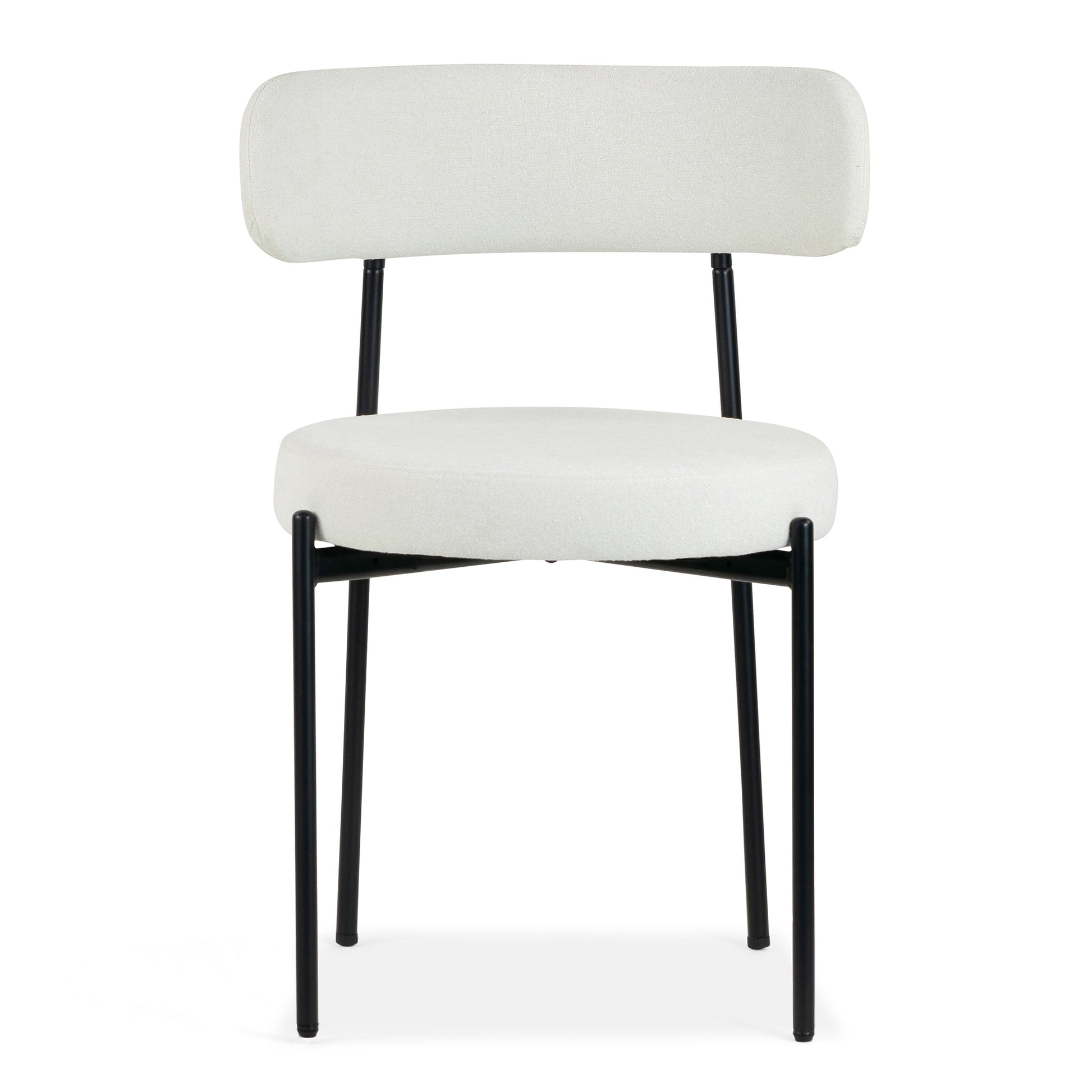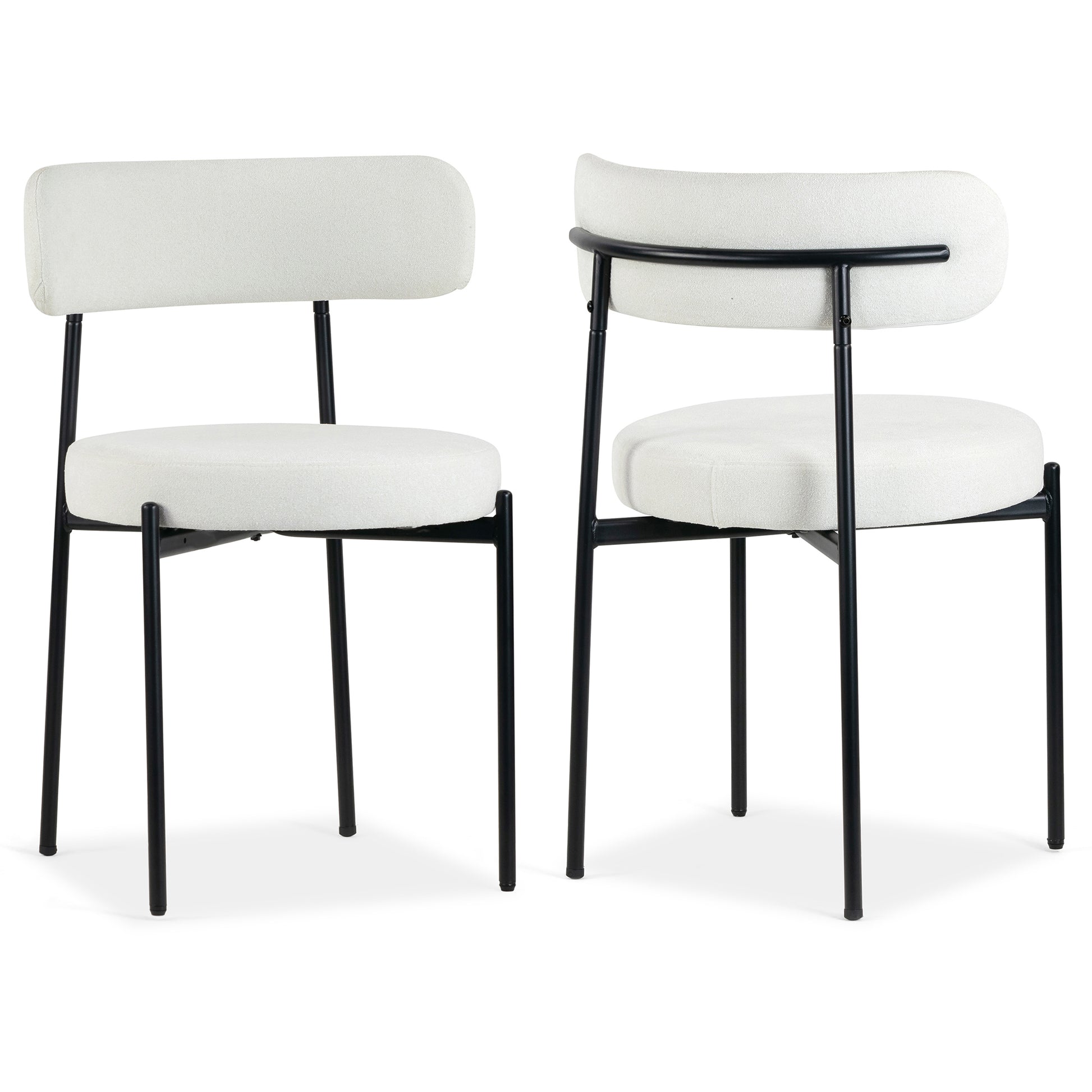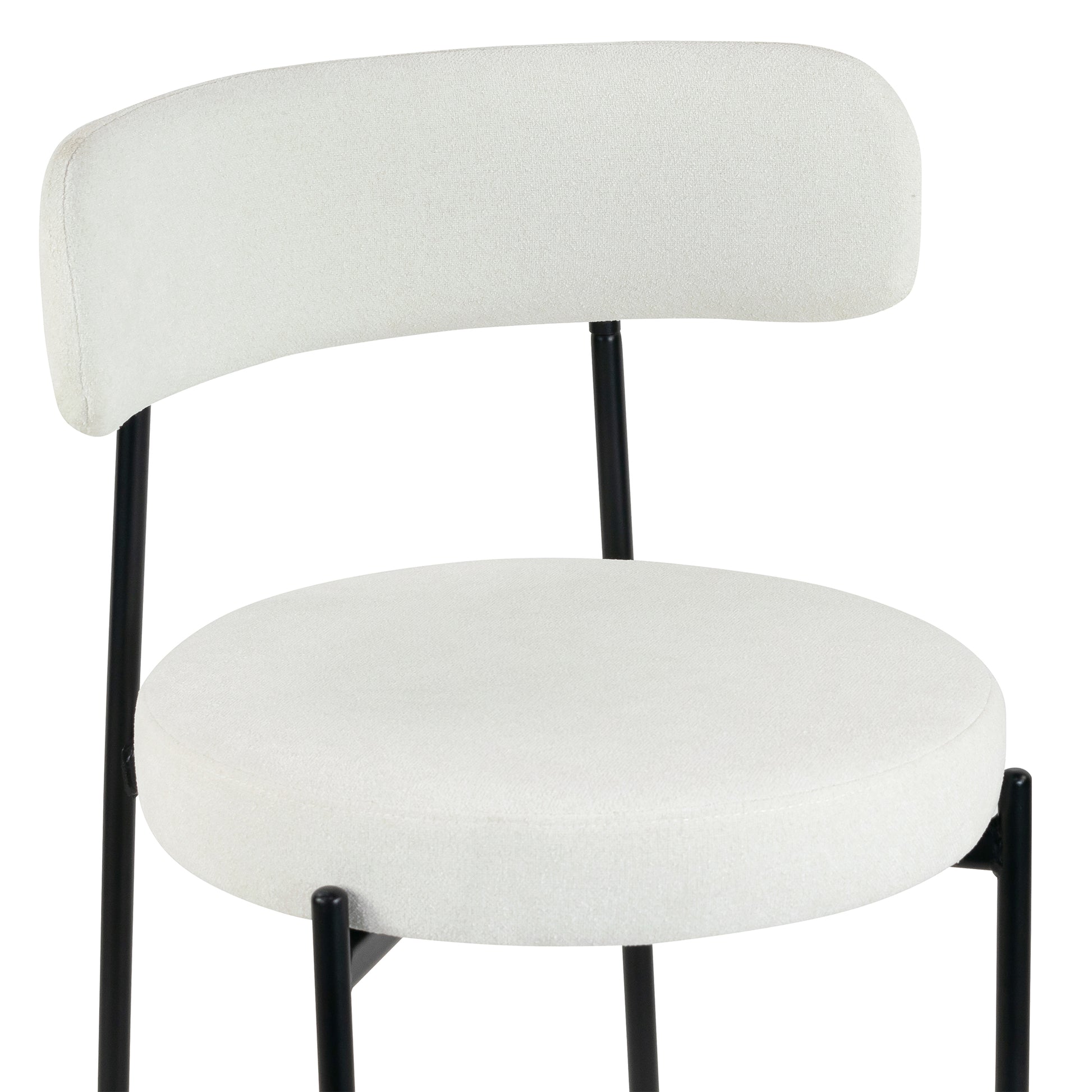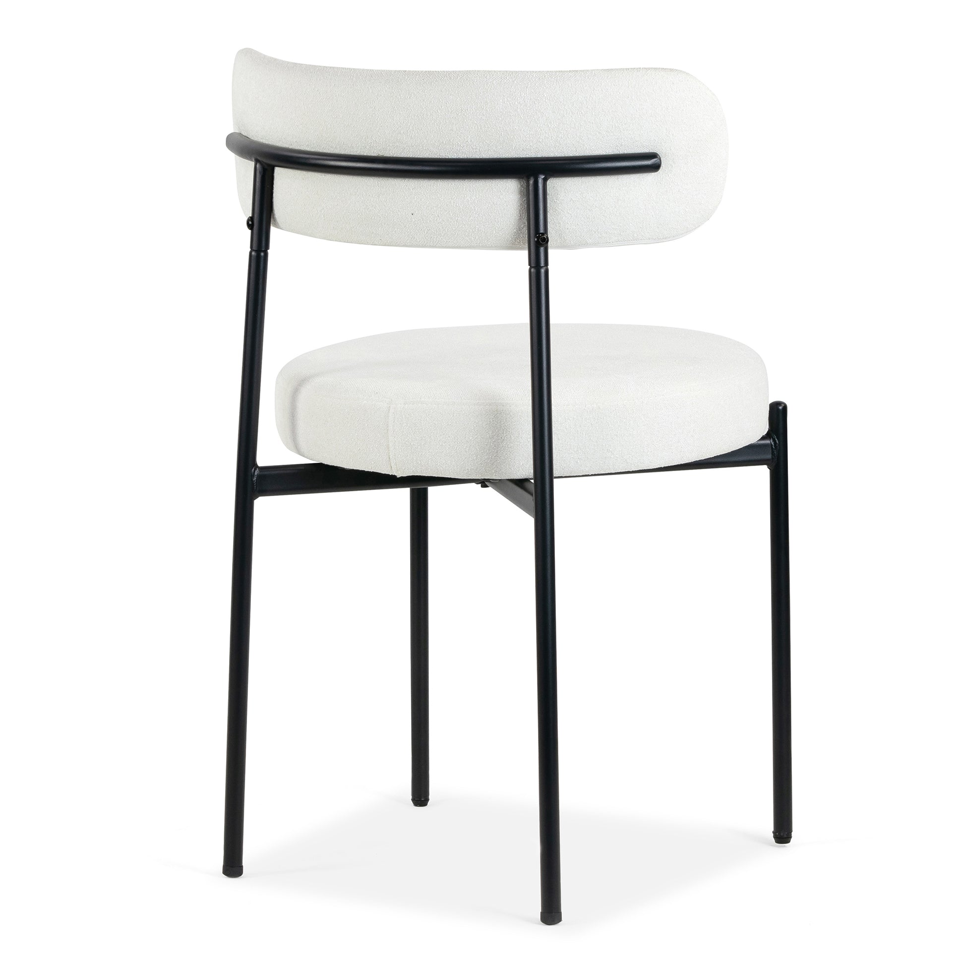 Set of 2 Avrom White Boucle Dining Chair with Black Metal Legs