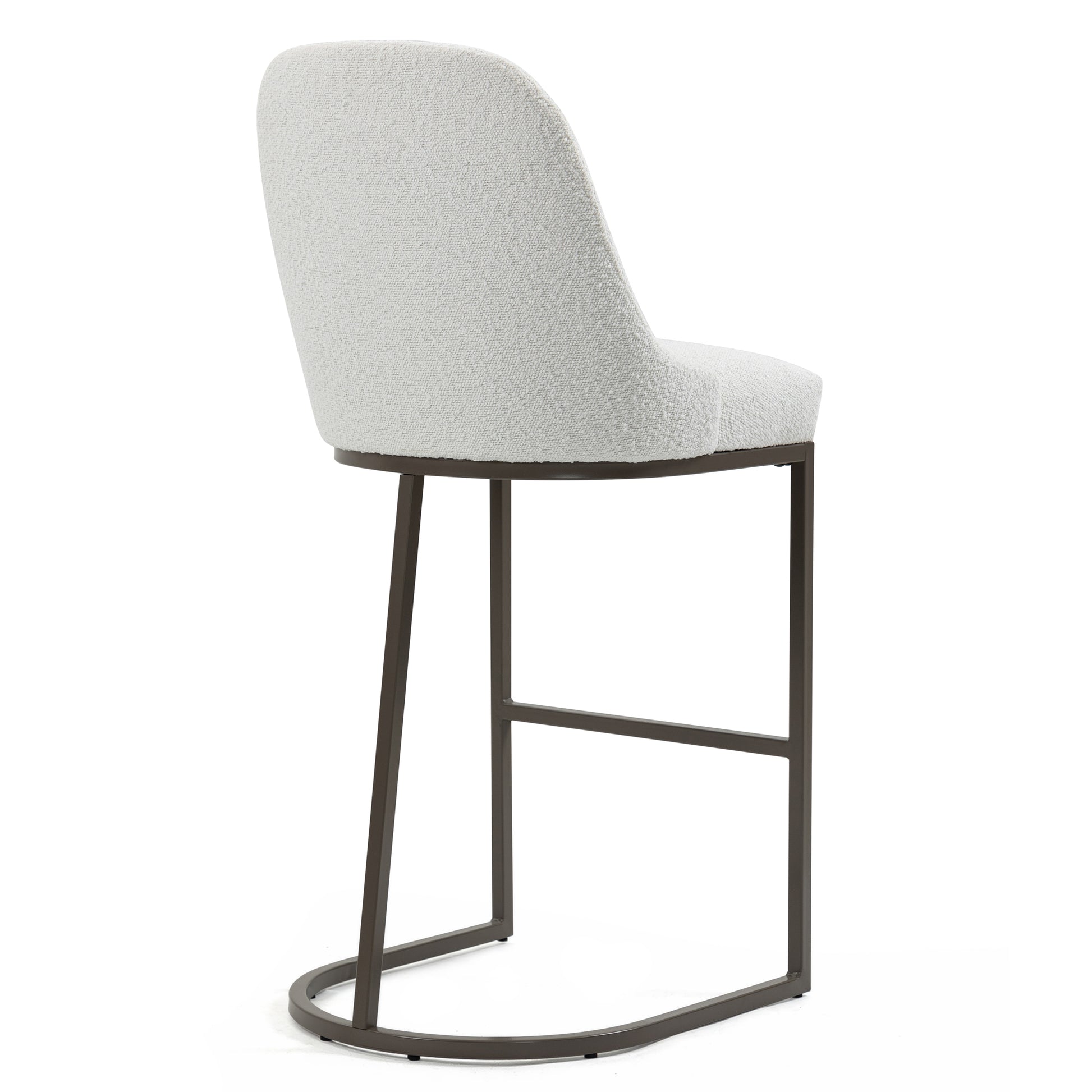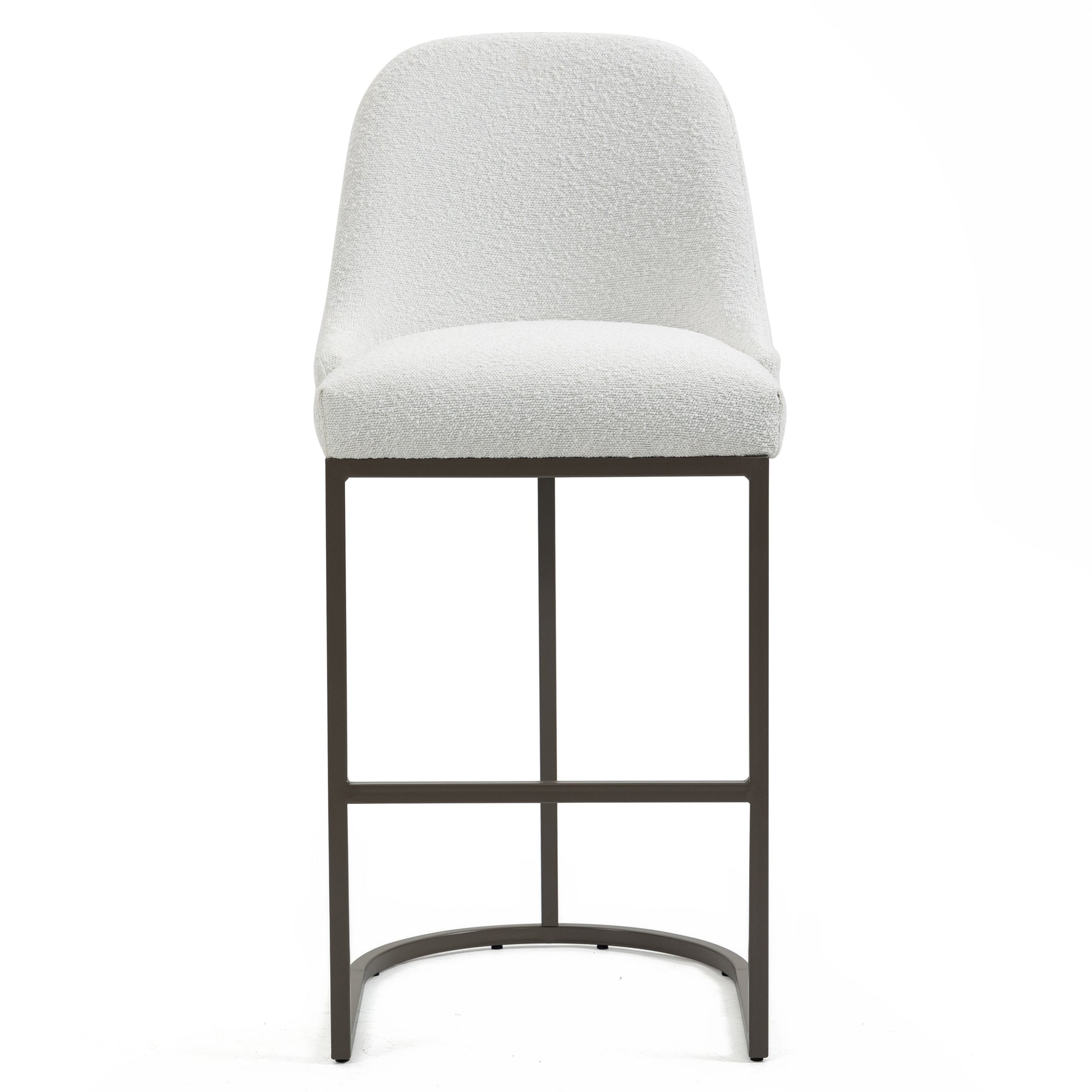 Set of 2 Ayane White Boucle Fabric Bar Stool with Iron Legs