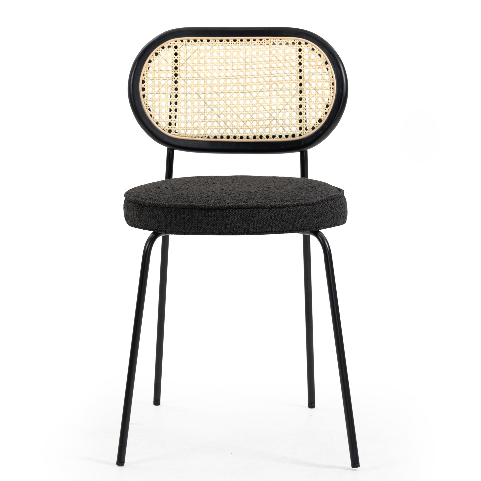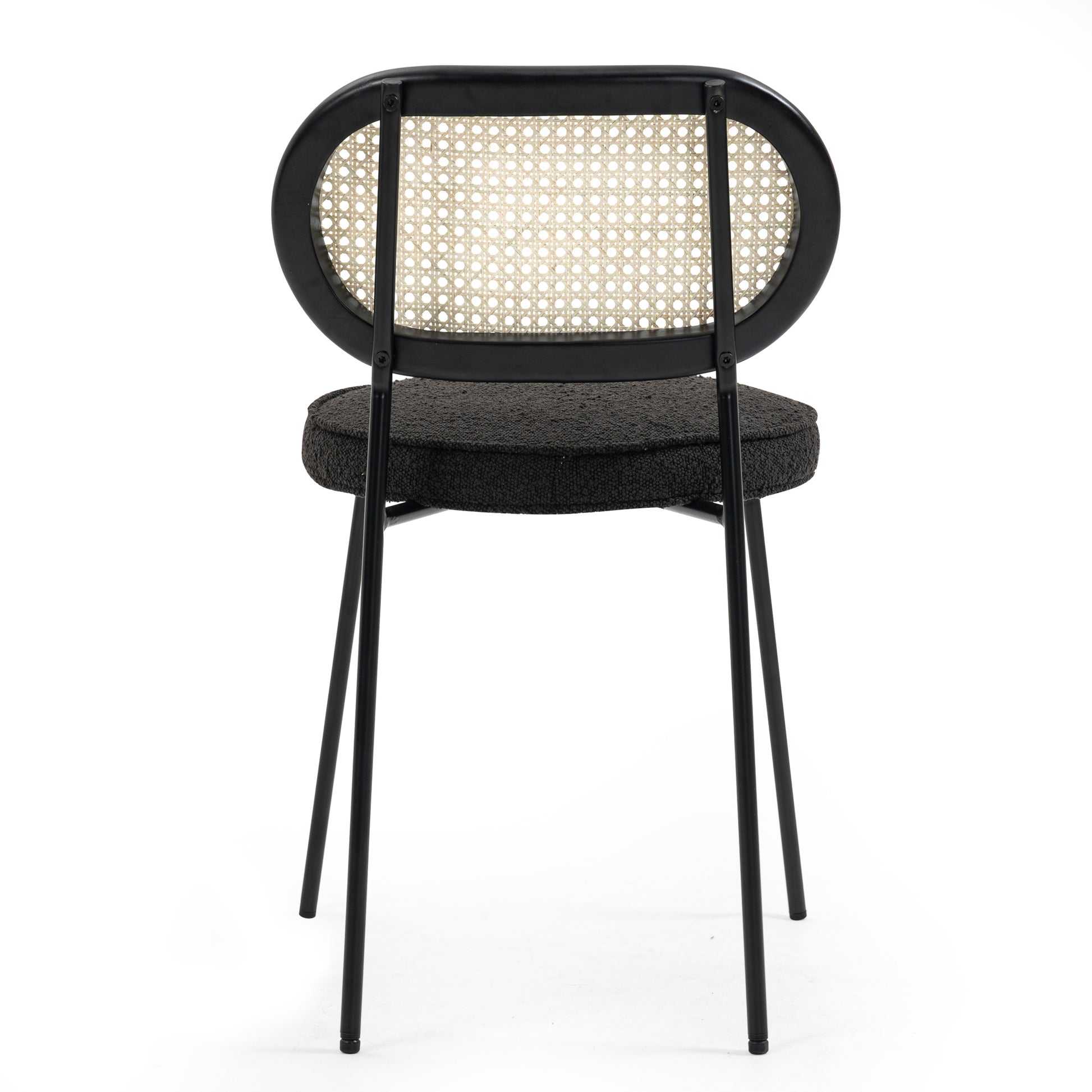 Set of 2 Azem Black Boucle Fabric Dining Chair with Rattan Backrest and Black Chrome Legs