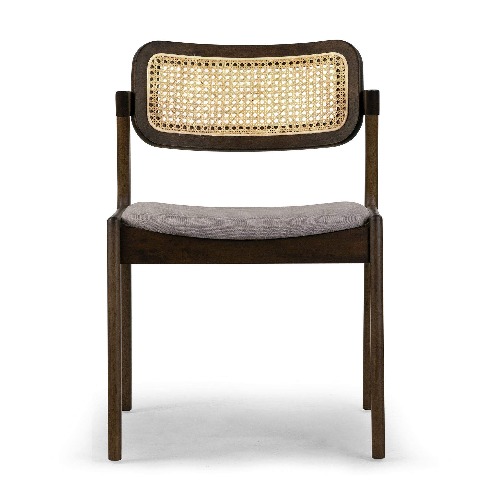 Set of 2 Azula Gray Fabric Dining Chair with Rattan Back and Walnut Wood Legs