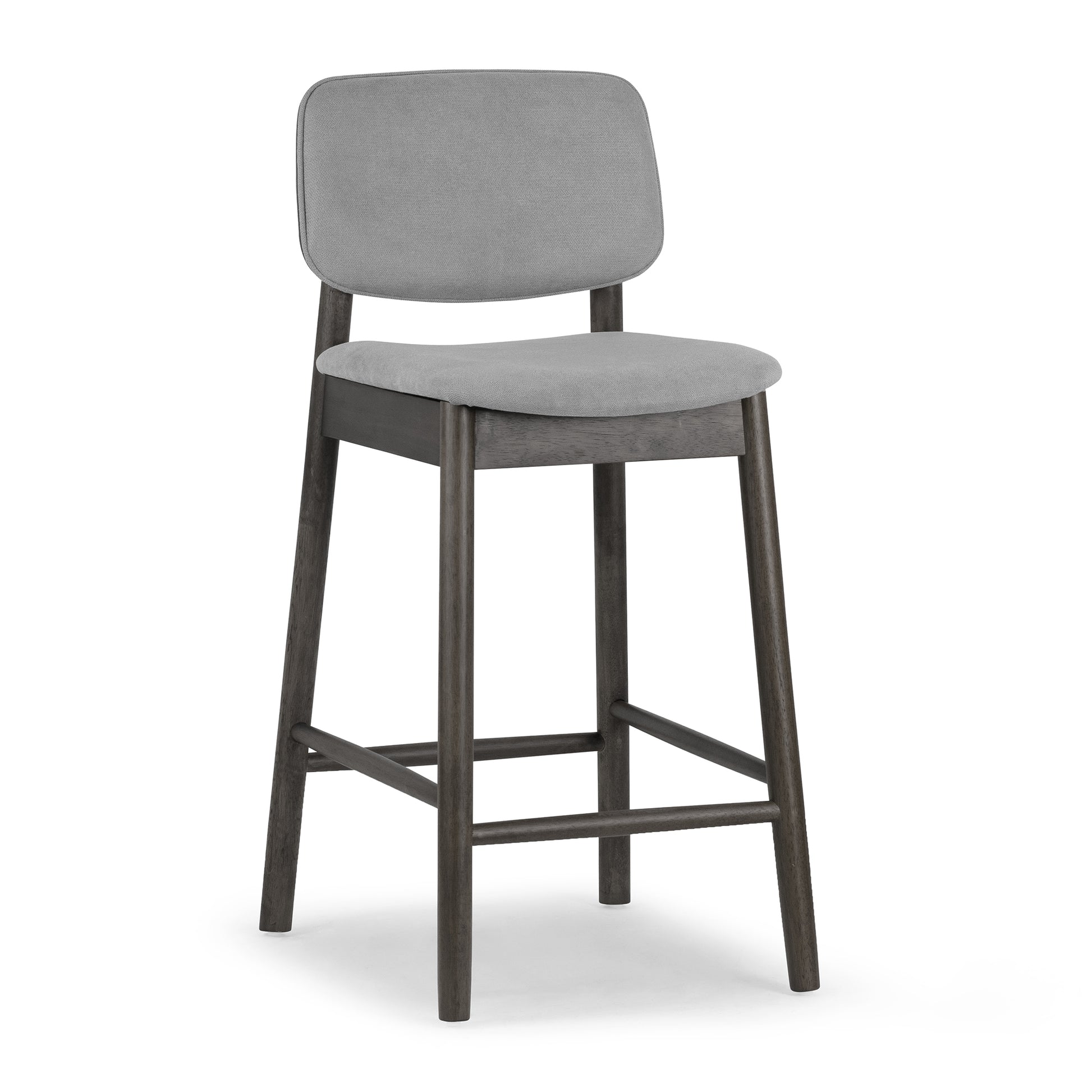 Elevate your home's aesthetic with this sophisticated counter stool. Its sleek black rubberwood frame and legs provide a stable foundation, while the soft grey cushion and matching backrest offer a comfortable seating experience. This stool seamlessly combines style and function, making it a versatile addition to your kitchen or bar area, where modern design meets everyday comfort.