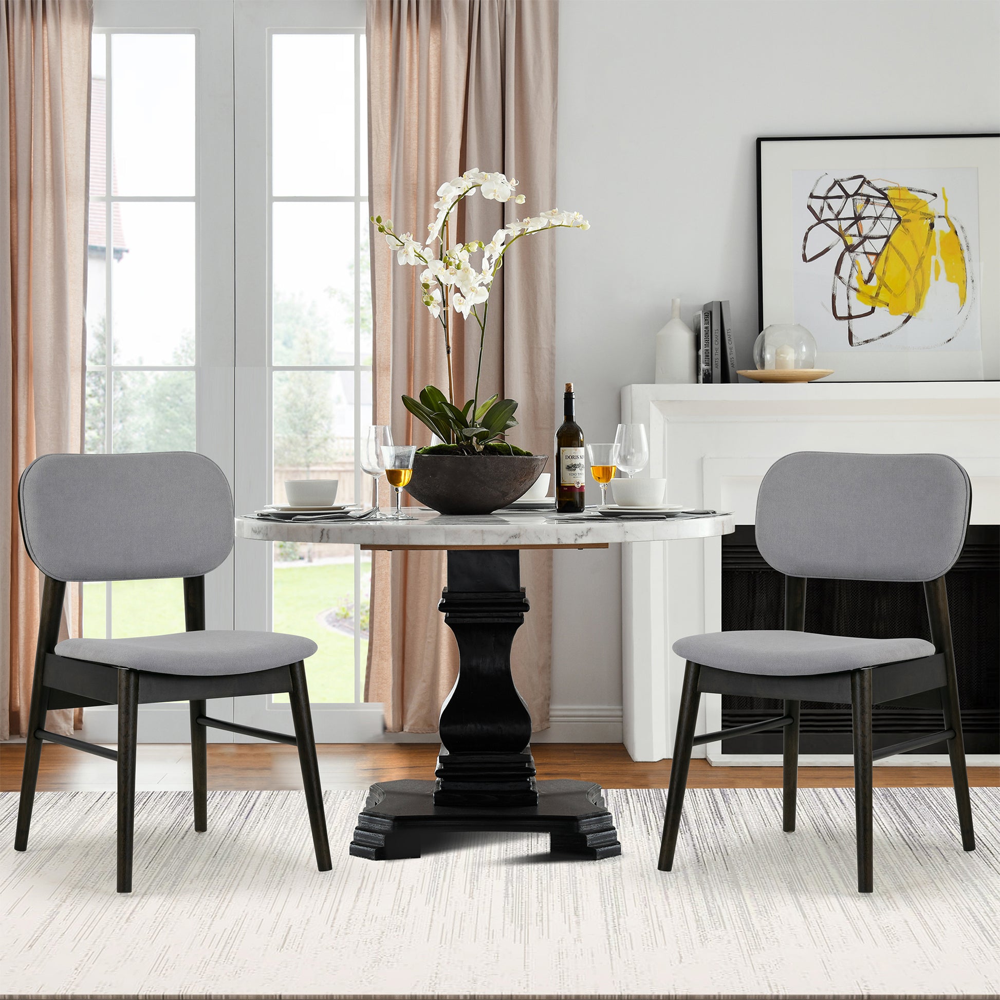 Set of 2 Babette Gray Fabric Dining Chair with Black Wood Legs