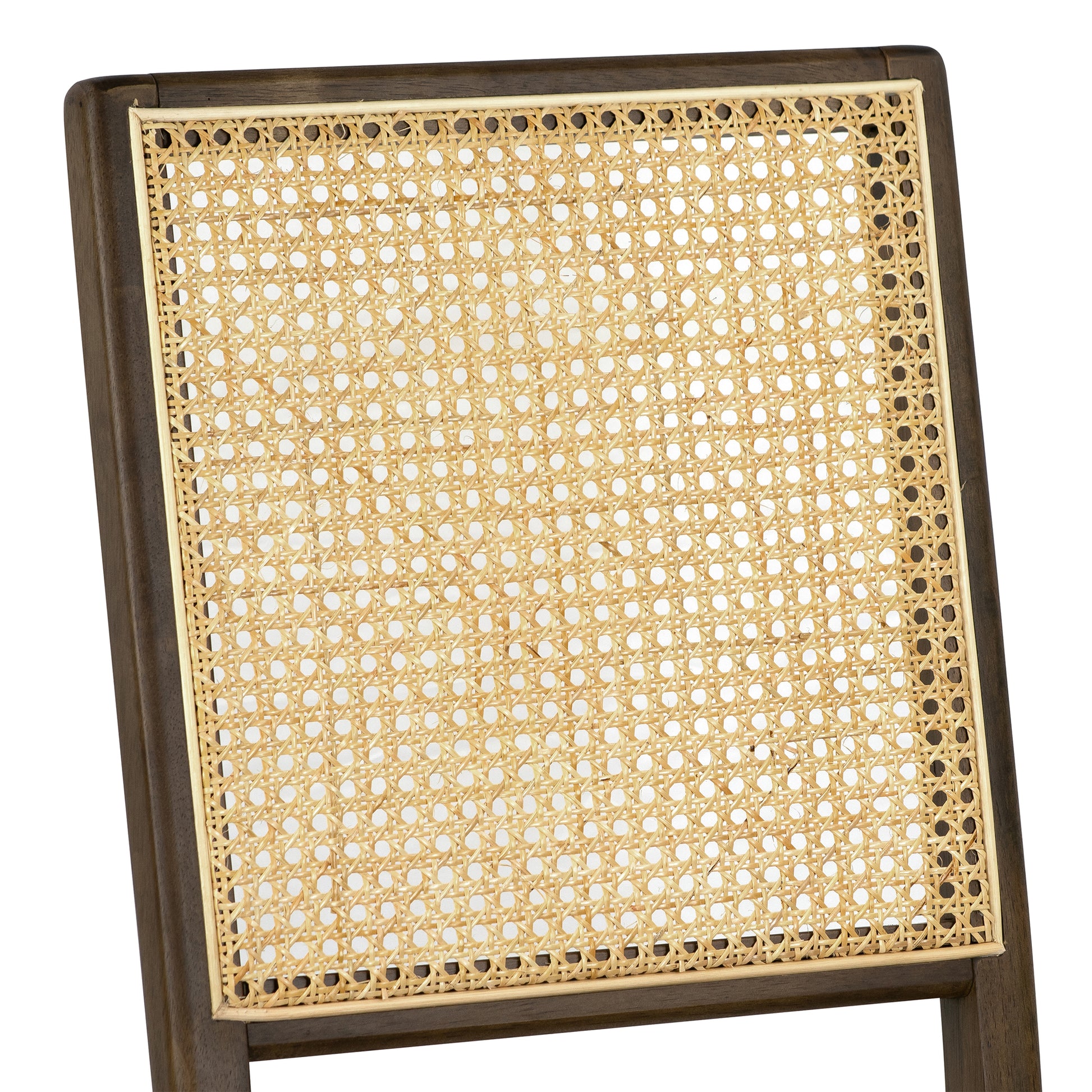 Add a touch of elegance to your dining area with this exquisite dining chair. The chair boasts a cozy gray cushioned seat that ensures comfort, complemented by a striking rattan high backrest that exudes natural beauty. Supported by sturdy walnut rubberwood legs, this chair seamlessly blends style and durability, making it an ideal choice for those who appreciate both aesthetics and functionality in their dining space.