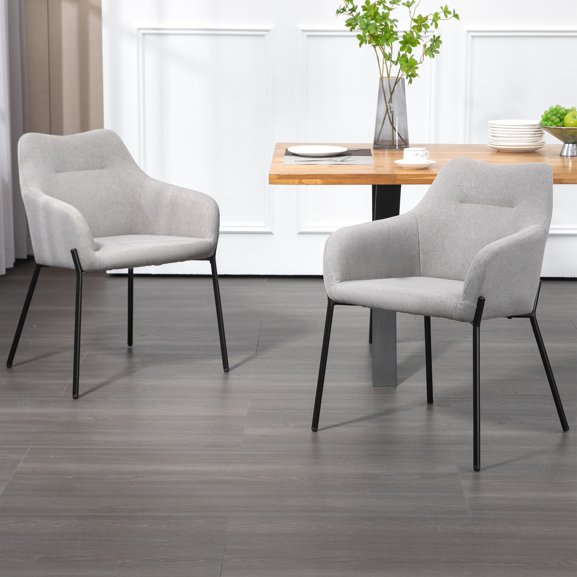 Unveil modern elegance in your dining area with our gray dining chair featuring sleek black iron accent legs. The stylish blend of cool grey upholstery and bold iron details creates a sophisticated and versatile piece. Designed for both comfort and aesthetics, this chair effortlessly elevates your dining experience, making it a perfect addition to contemporary spaces.