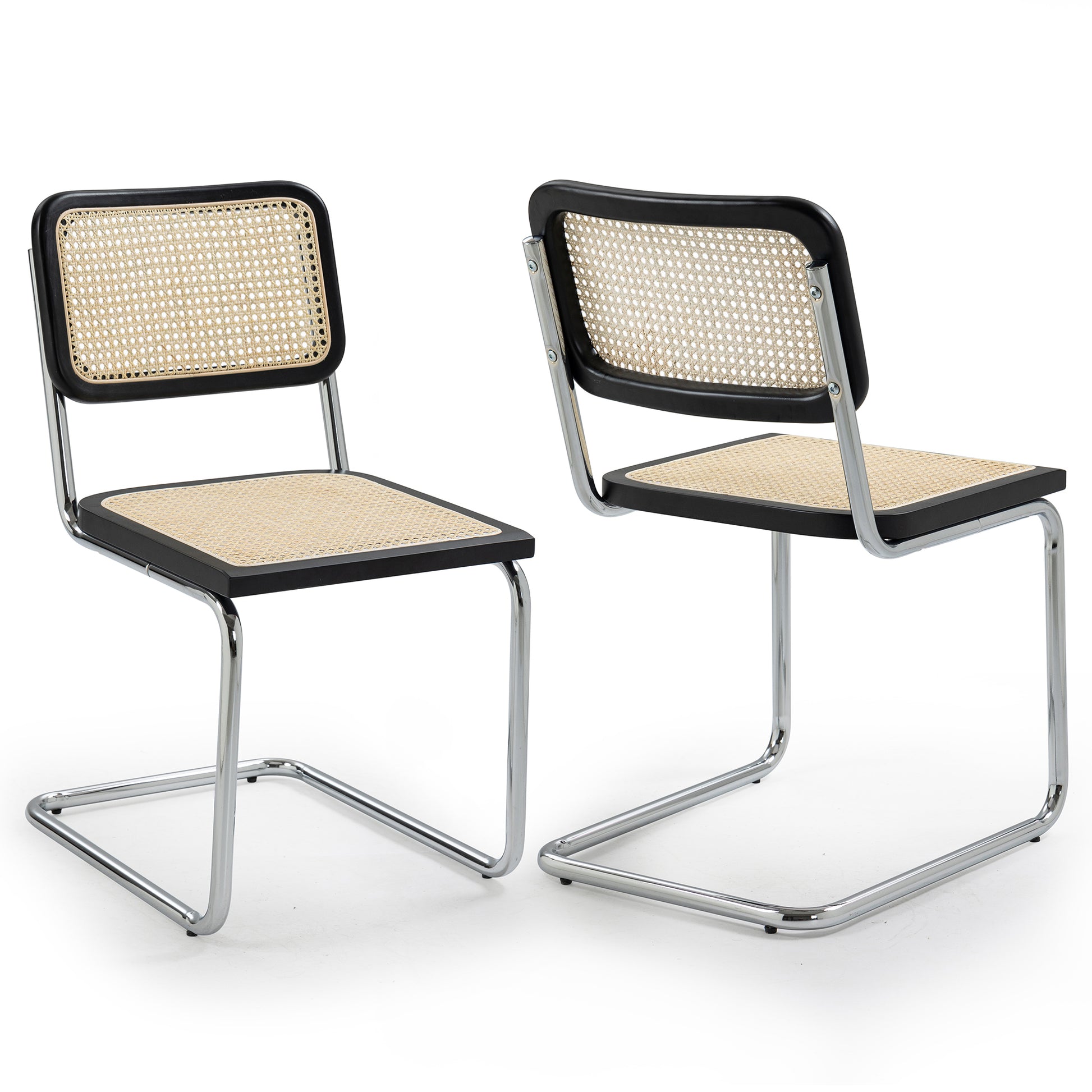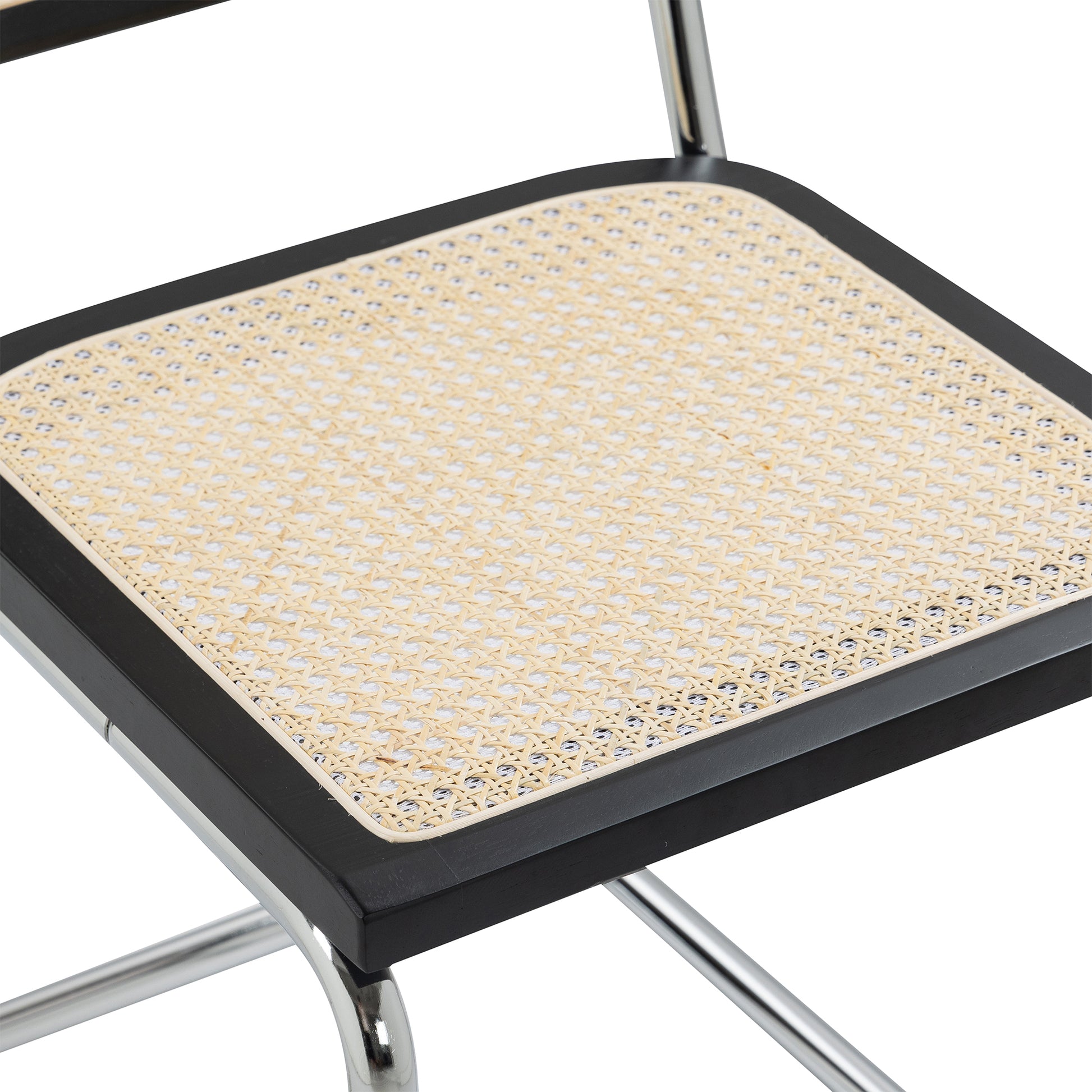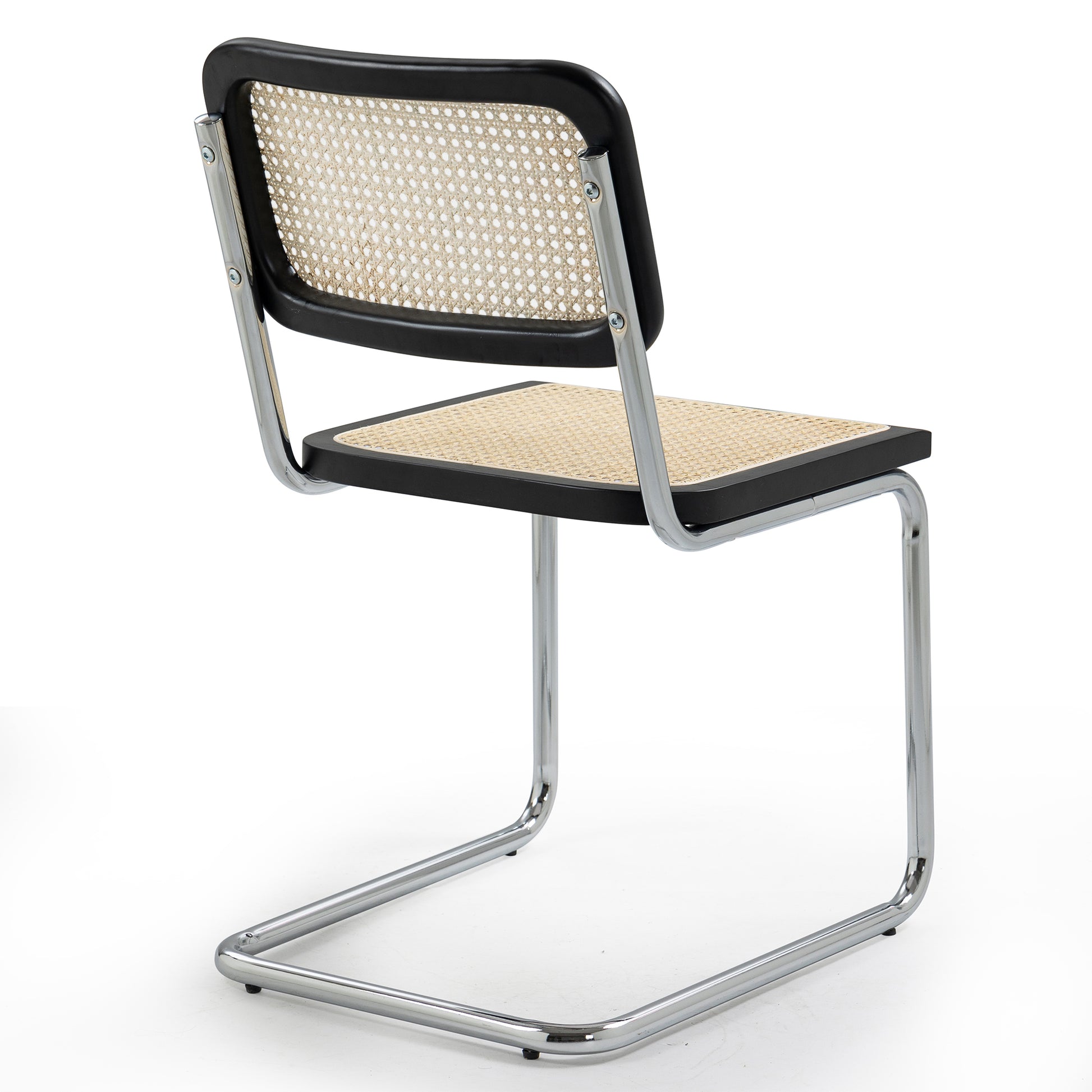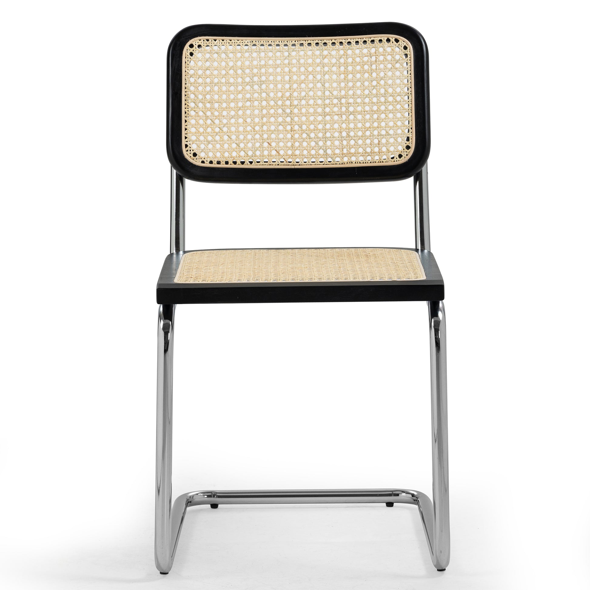 Experience the perfect fusion of nature and modernity with our black framed rattan wooden dining chair. The intricately designed rattan back seamlessly combines with sleek chrome legs, creating a stylish contrast. This chair not only adds a touch of organic charm to your dining space but also introduces a contemporary edge. Elevate your dining experience with the unique blend of materials and aesthetics.
