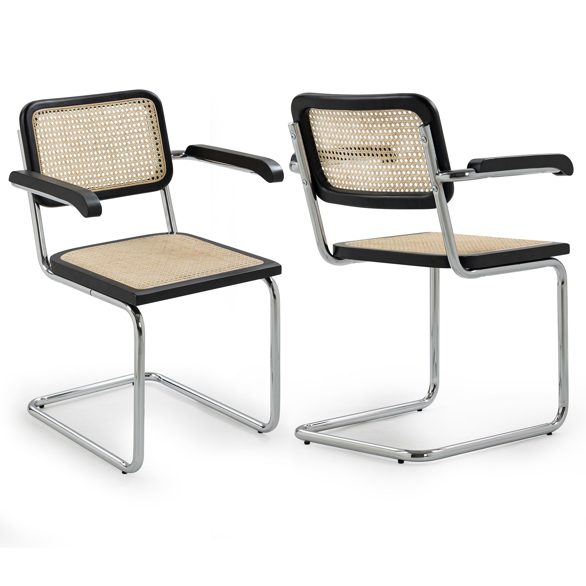 Set of 2 Barnard Black Wooden Dining Chair with Rattan Back and Chrome Legs