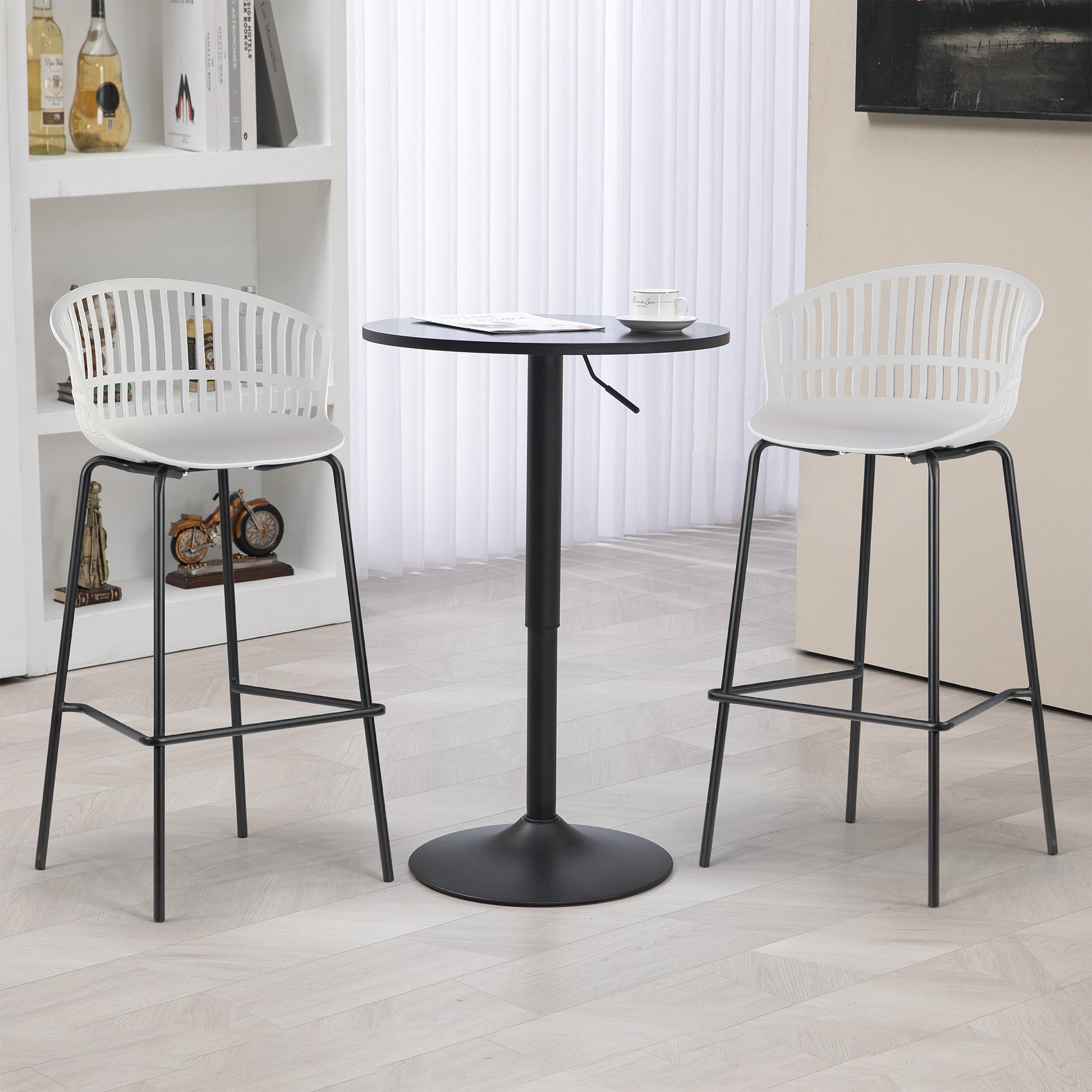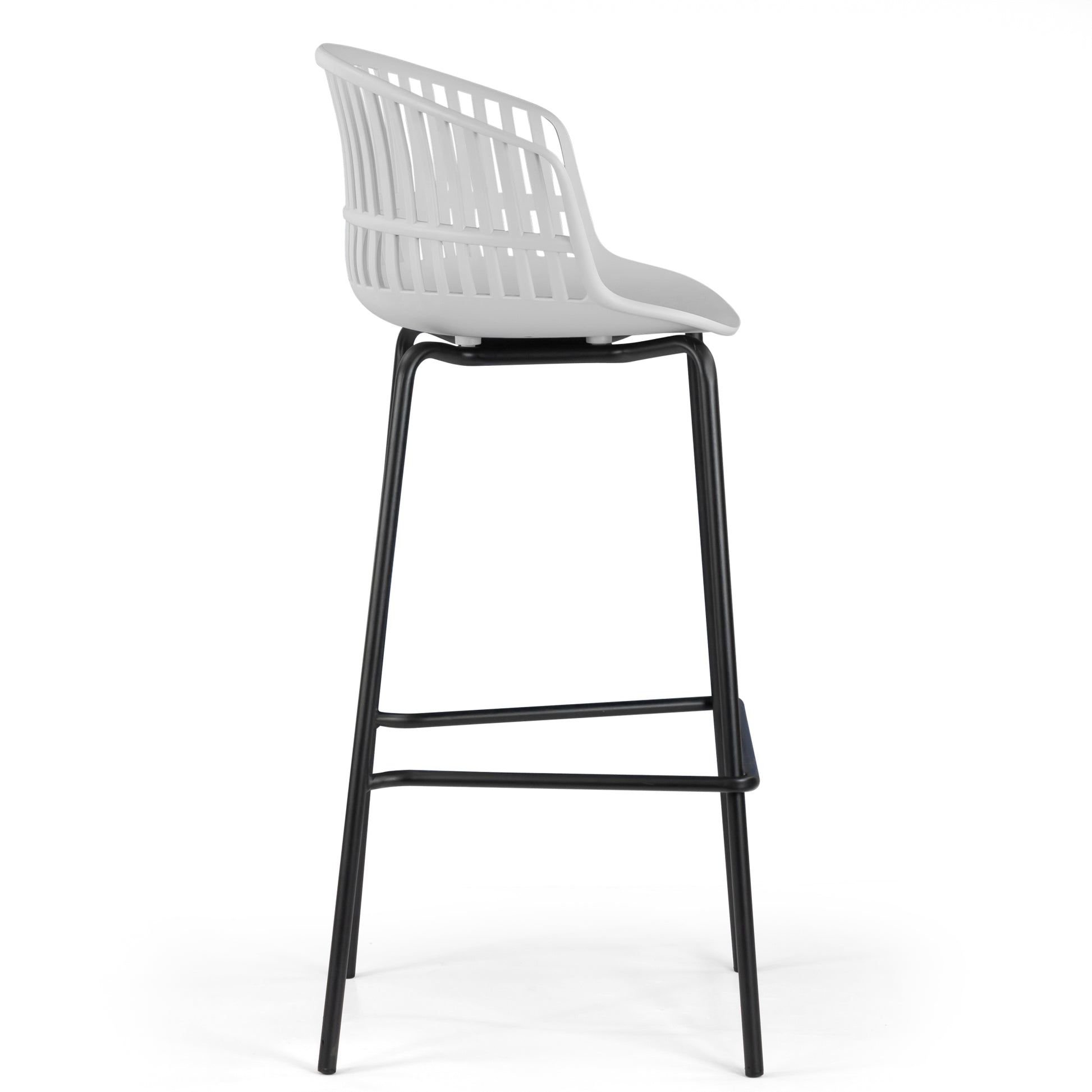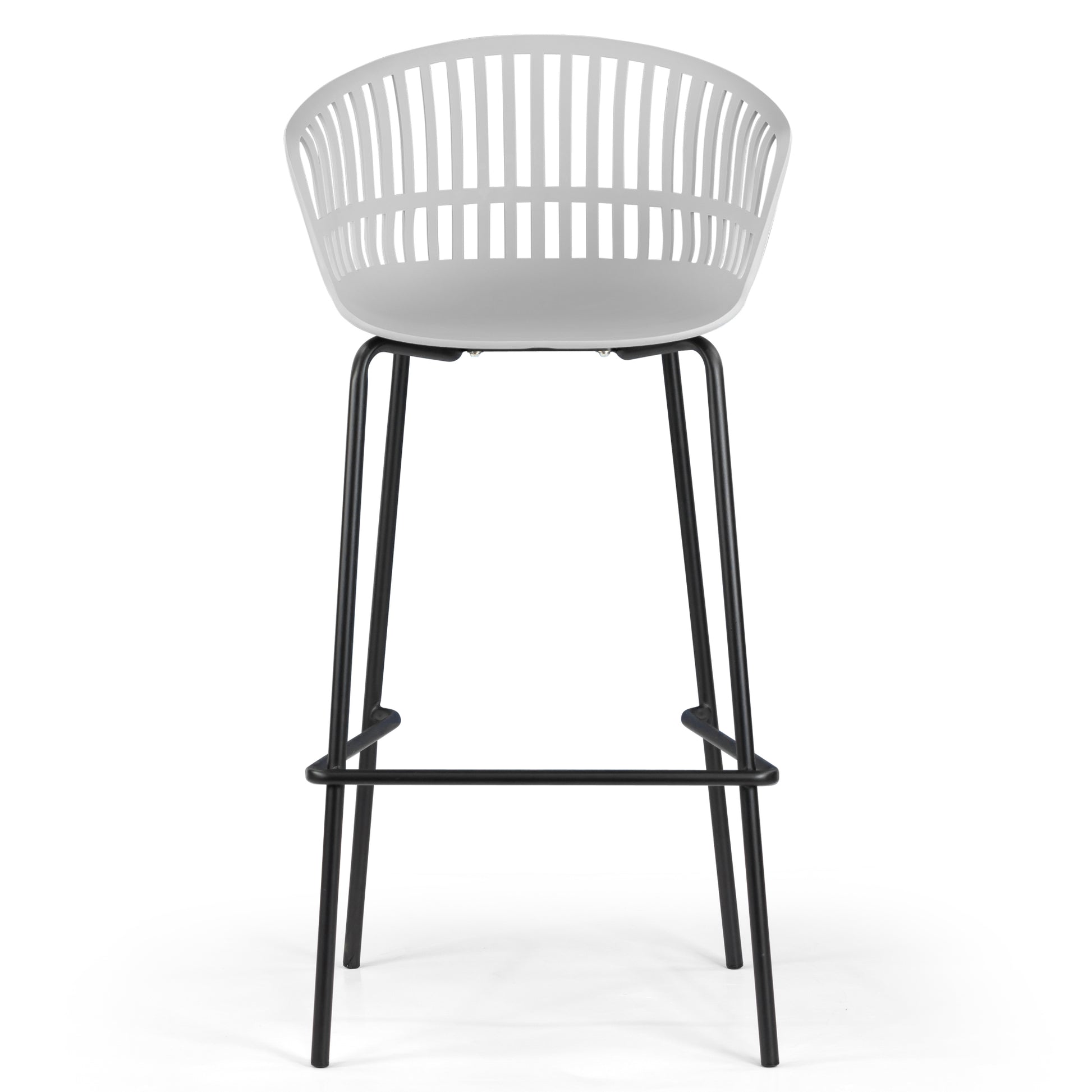 Set of 2 Basil Gray Plastic Bar Stool with Slatted Back and Iron Legs