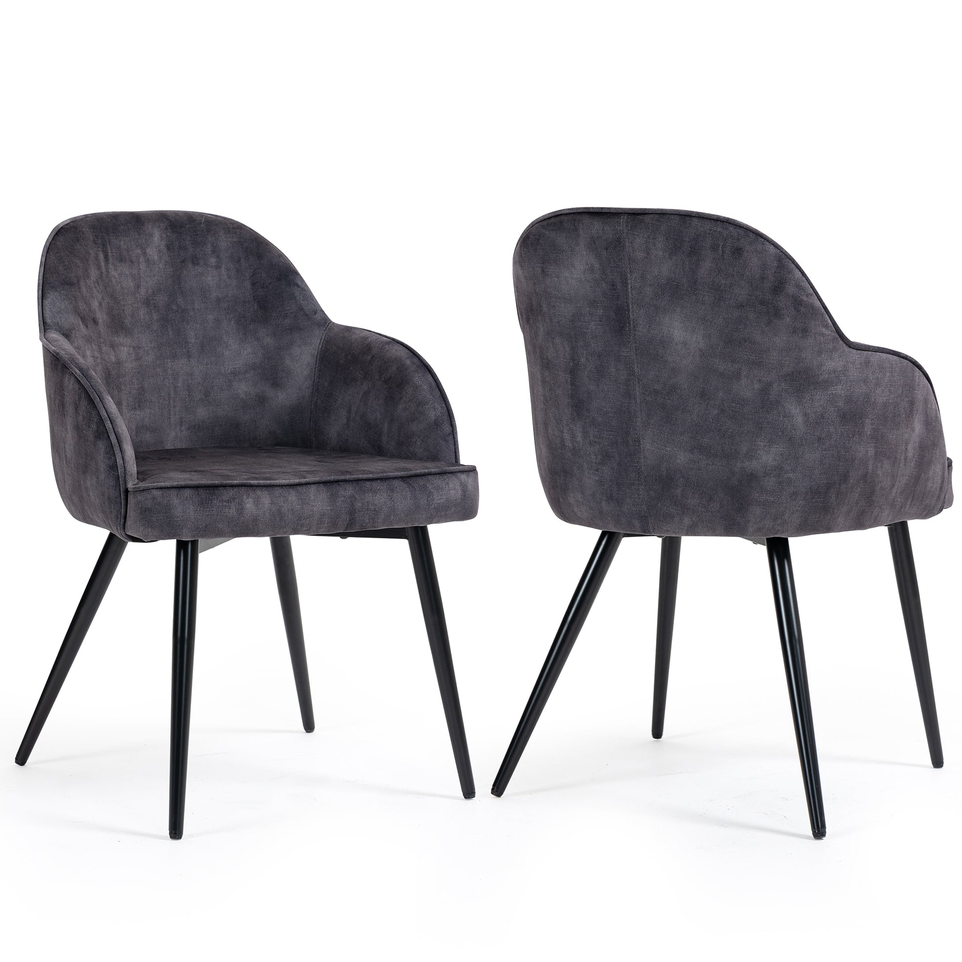 Set of 2 Batia Gray Velvet Fabric Dining Chairs with Black Iron Legs