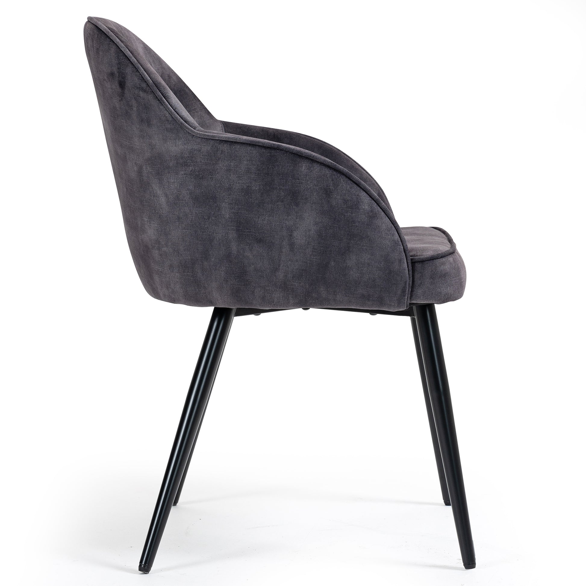 Indulge in luxurious comfort with our dark gray velvet dining chair, seamlessly blending sophistication and durability. Crafted with sumptuous velvet fabric, its plush seat offers unparalleled relaxation during meals. Supported by sleek black iron legs, this chair exudes modern elegance, enhancing any dining space with its timeless appeal and sturdy construction. Elevate your dining experience with style and comfort.