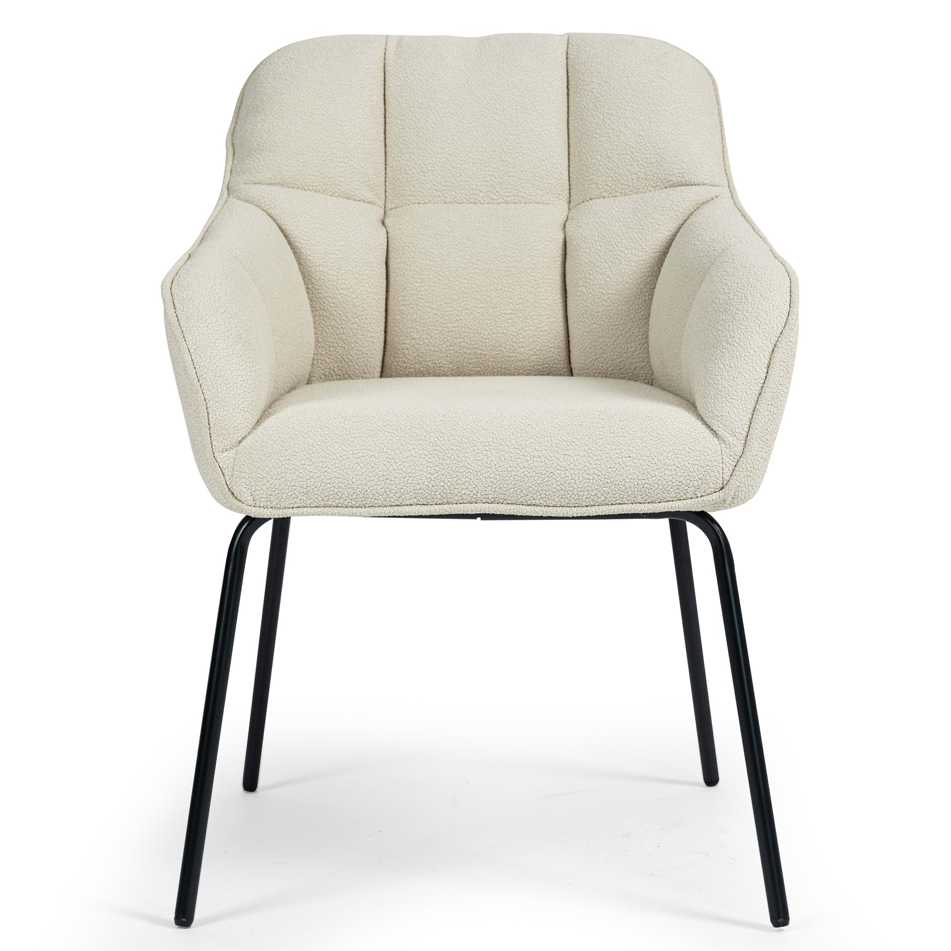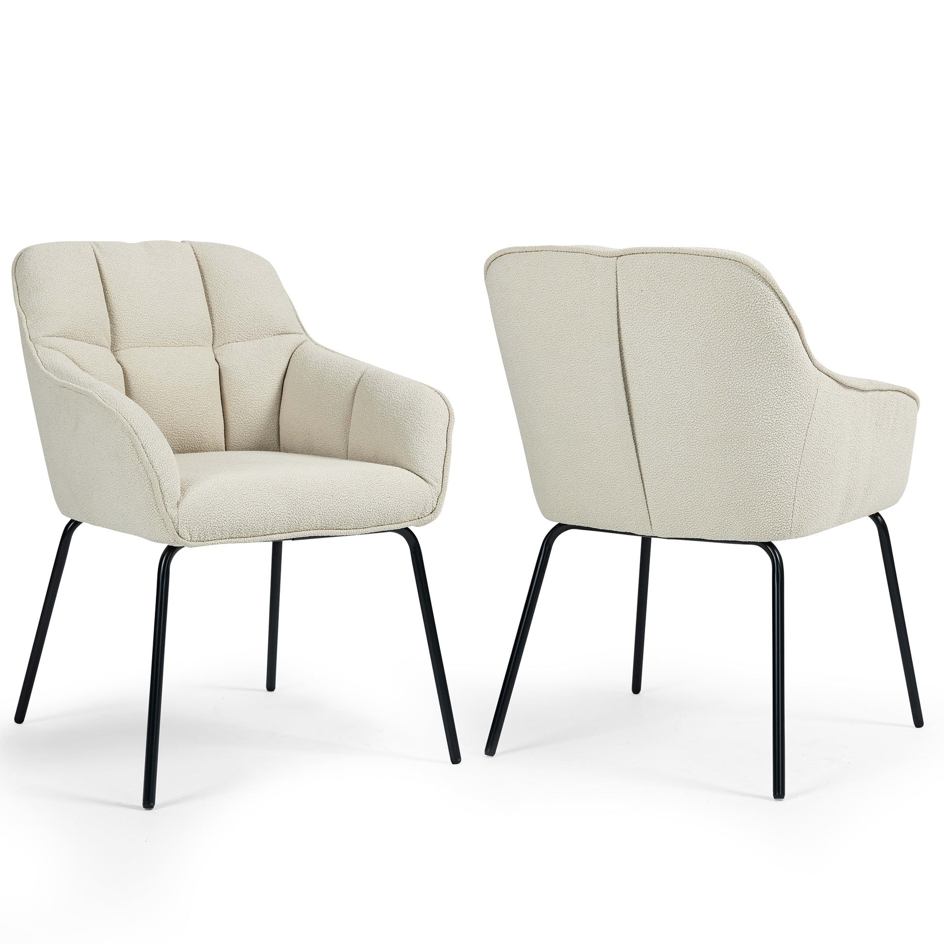 Set of 2 Batson White Boucle Fabric Dining Chair with Black Iron Legs