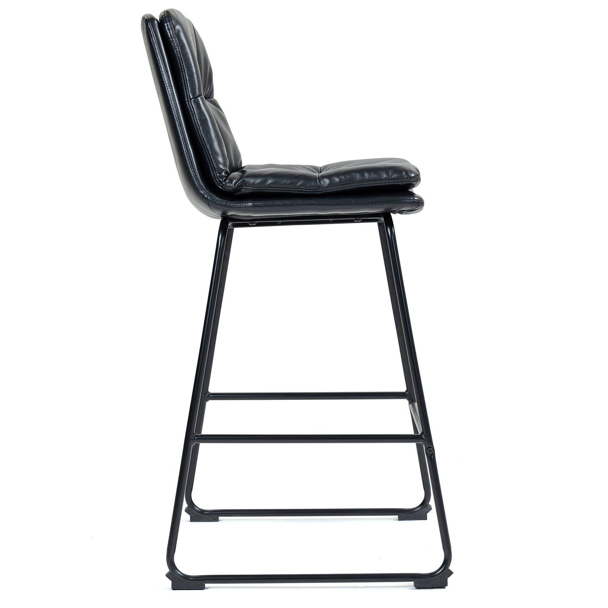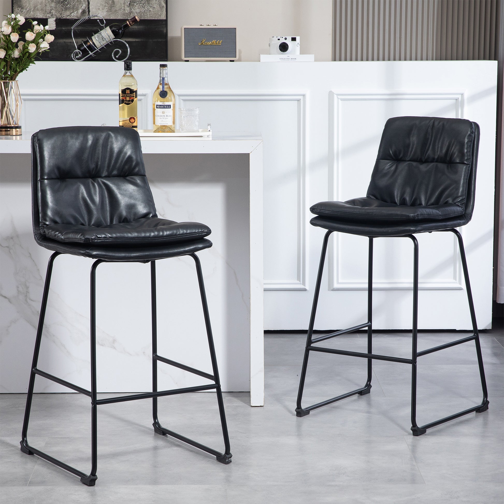Set of 2 Bauer Black Faux Leather Bar Stool with Black Iron Legs
