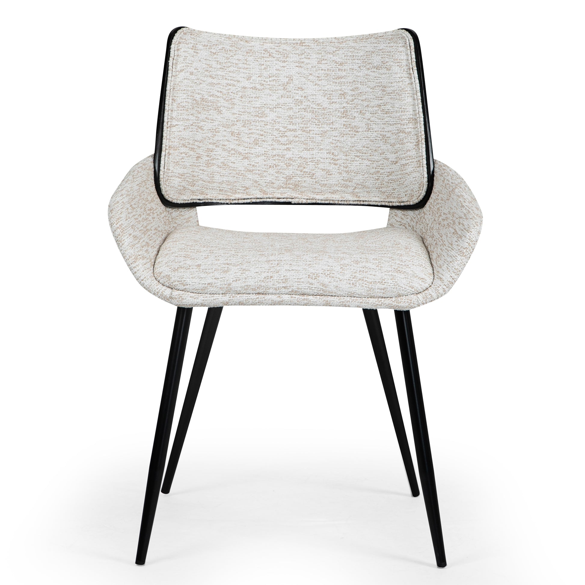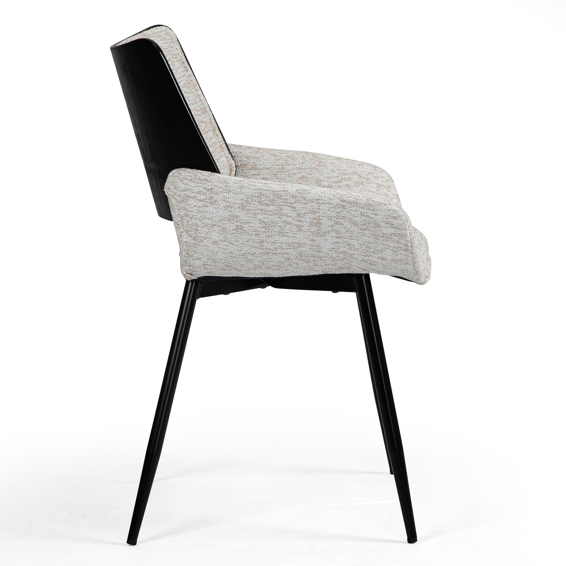 Set of 2 Bea White Two-Toned Linen Fabric Dining Chair with Black Iron Legs