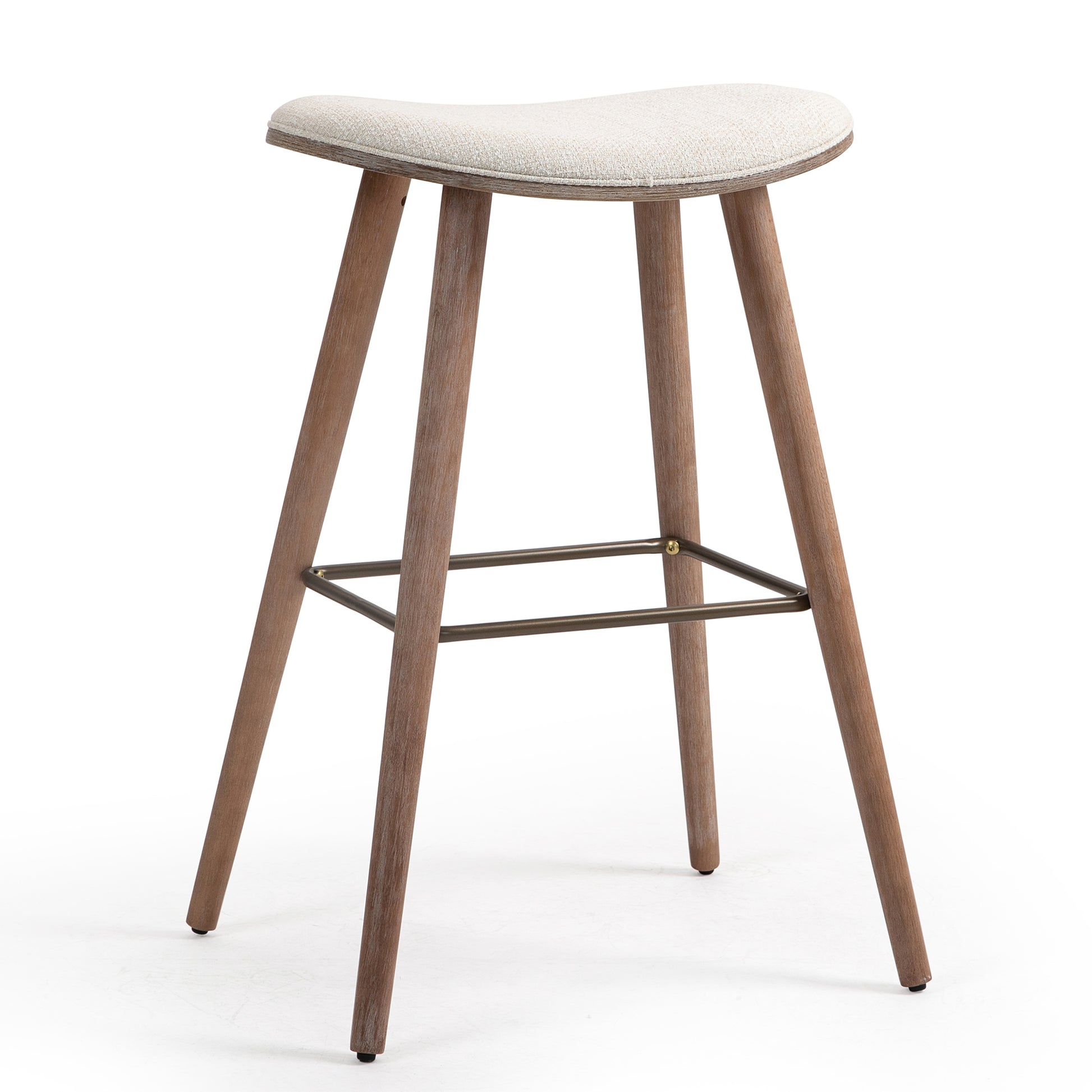 Elevate your bar area with our charming beige woven fabric bar stool. Crafted with sophistication in mind, it features sturdy wood legs that bring a touch of warmth to its contemporary design. The sleek metal footrest ensures comfort and durability, while the woven fabric upholstery adds texture and style. Perfect for any modern space, this stool effortlessly combines comfort and elegance for an inviting atmosphere.