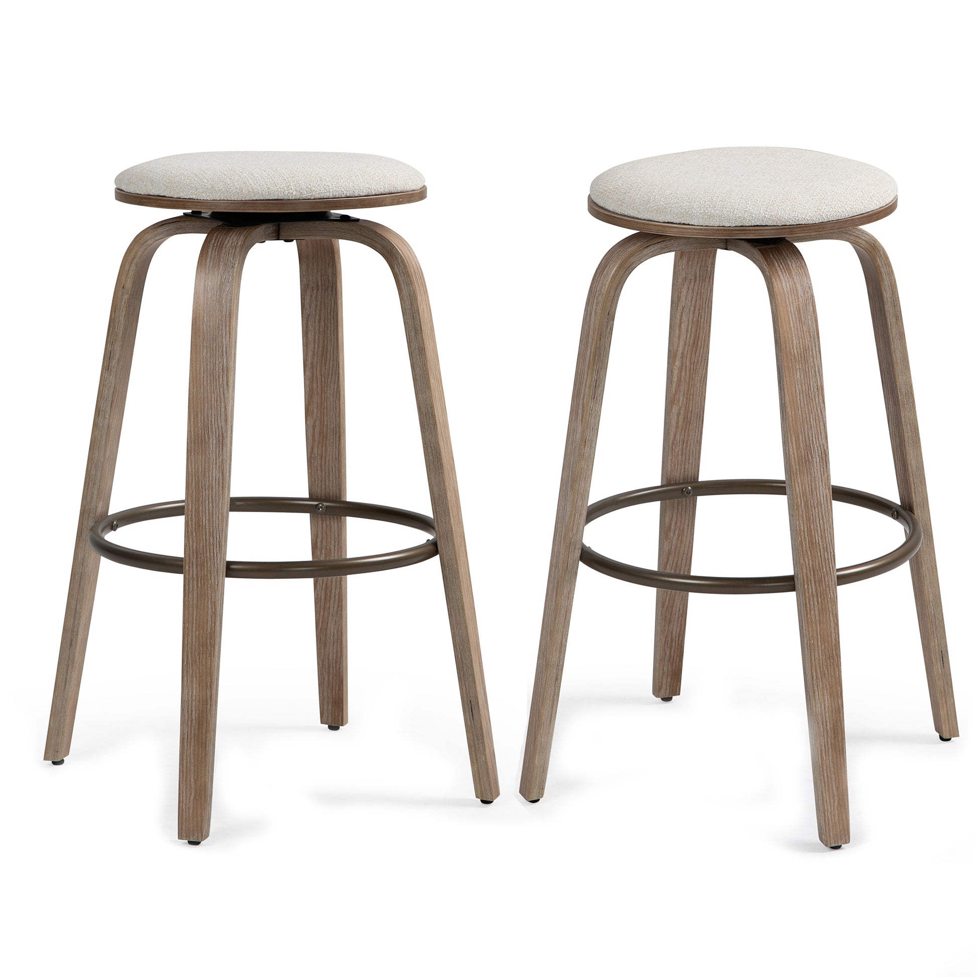Set of 2 Beatus Beige Woven Fabric Bar Stool with Natural Wood Legs Set