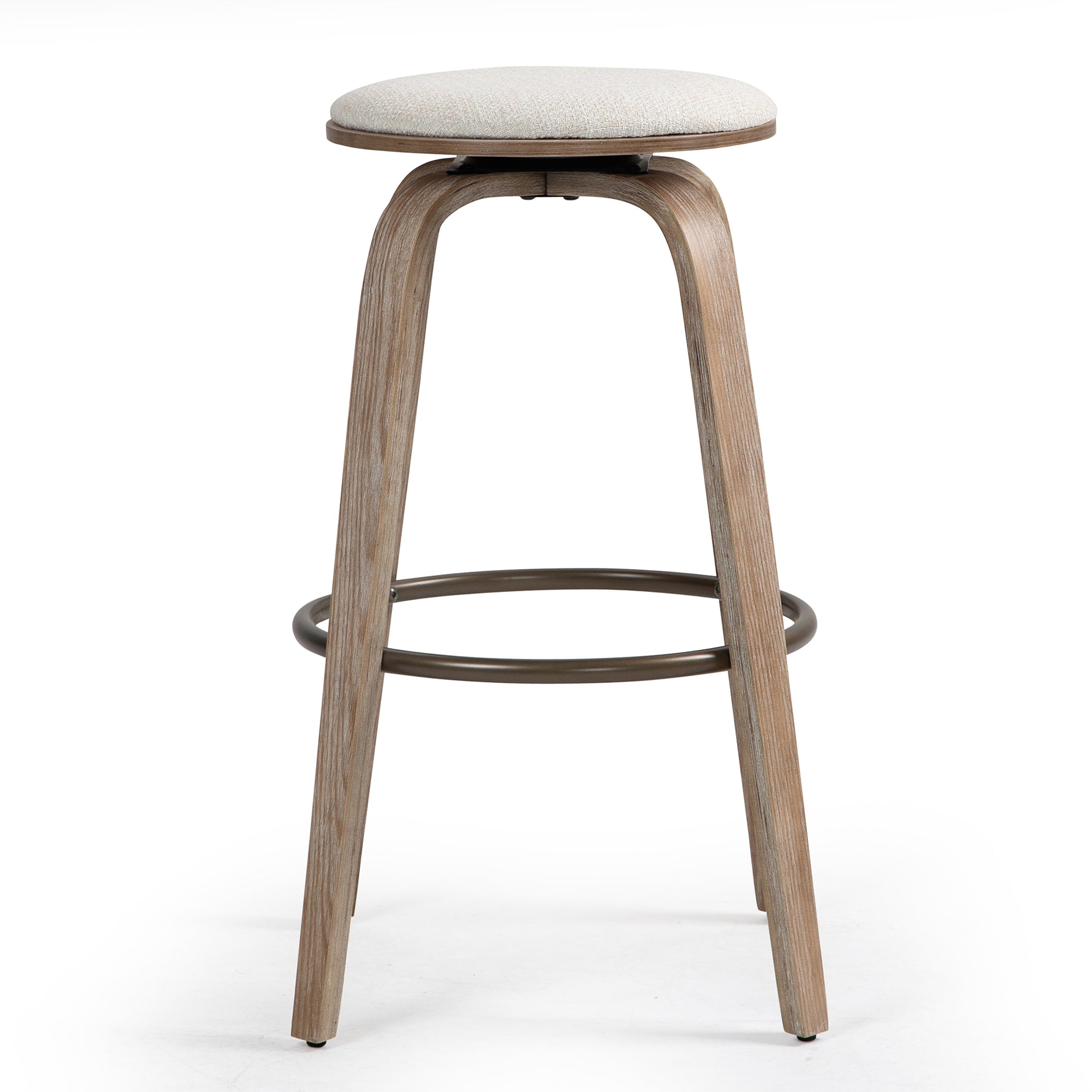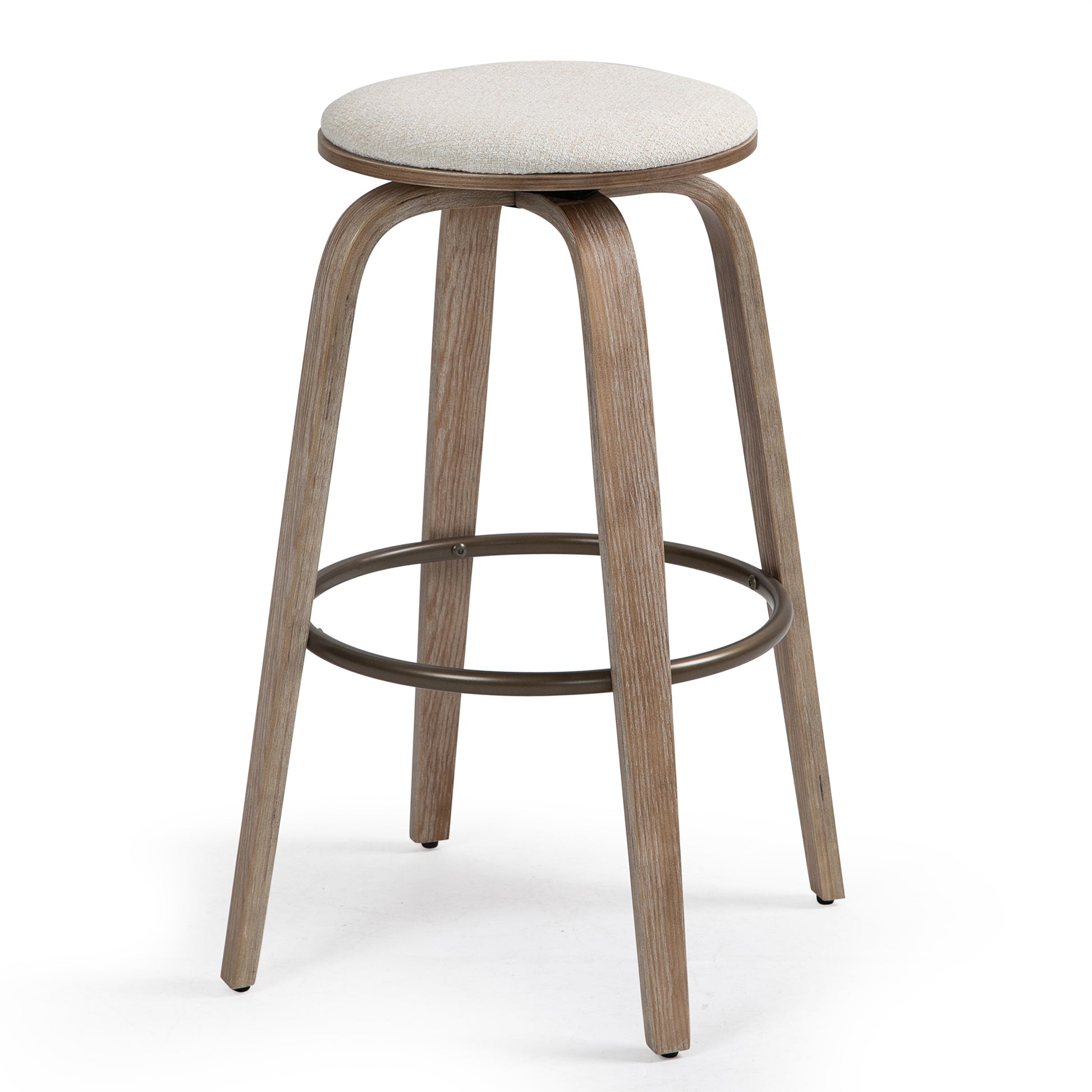 Elevate your bar area with our chic beige woven fabric bar stool. Its neutral tone effortlessly complements any decor, while the wooden legs add a touch of natural elegance. Crafted for comfort and durability, it features a sturdy metal footrest for added support. Whether enjoying drinks with friends or casual meals, this stylish stool offers both style and functionality for your space.