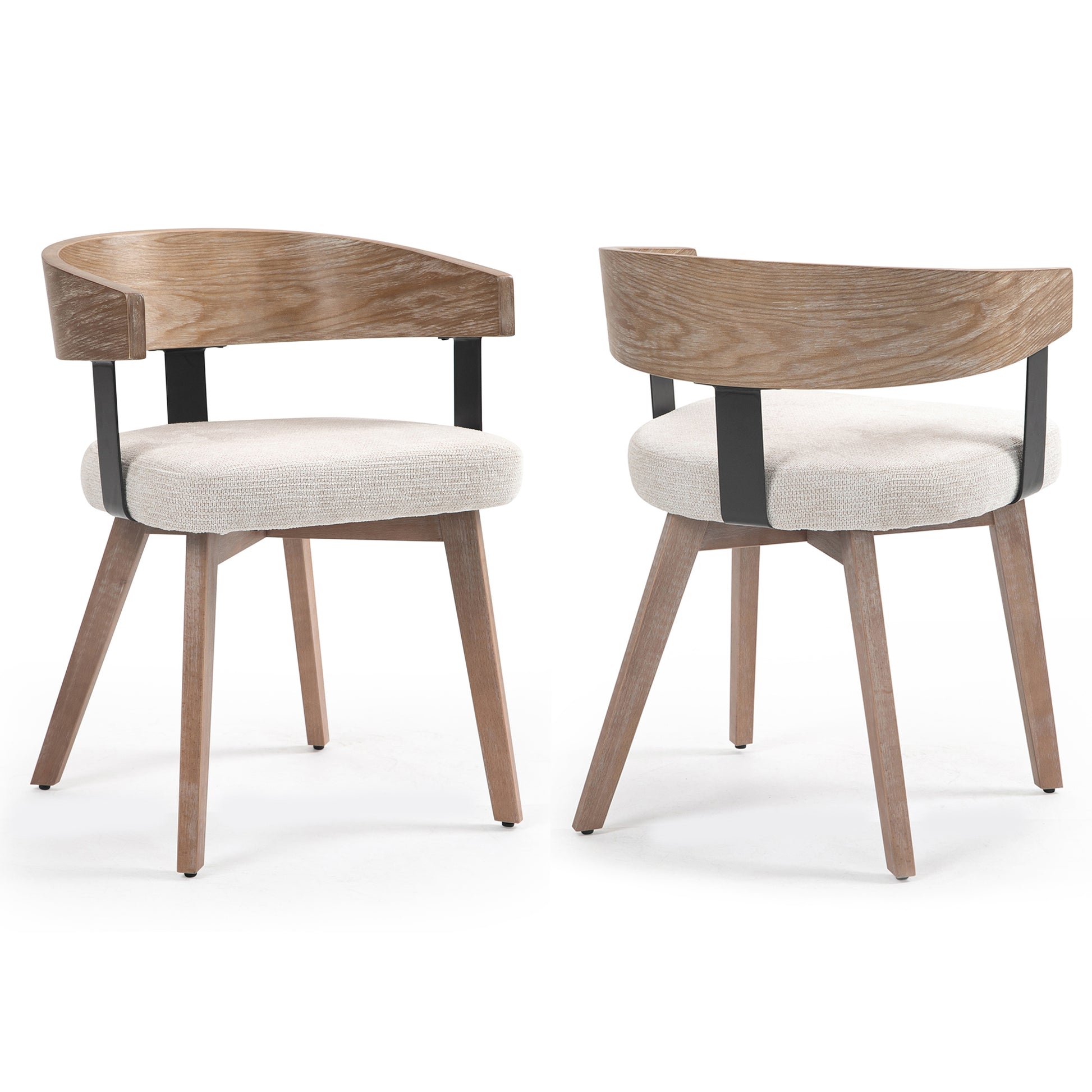Set of 2 Beck Beige Linen Fabric Dining Chair with Natural Wood Backrest and Legs