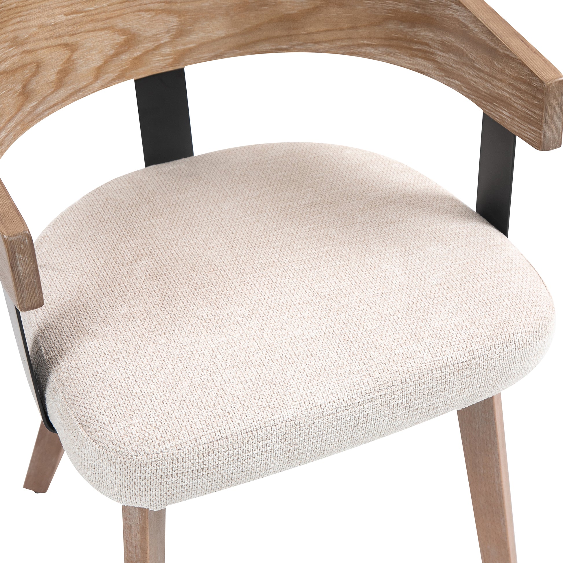 Discover understated elegance with our beige linen fabric dining chair. Crafted with a natural wood backrest and legs, it radiates warmth and sophistication. Black iron accents add a touch of modernity and durability, enhancing its timeless appeal. Whether hosting dinner parties or enjoying family meals, indulge in comfort and style. Elevate your dining experience with this exquisite blend of craftsmanship and design.
