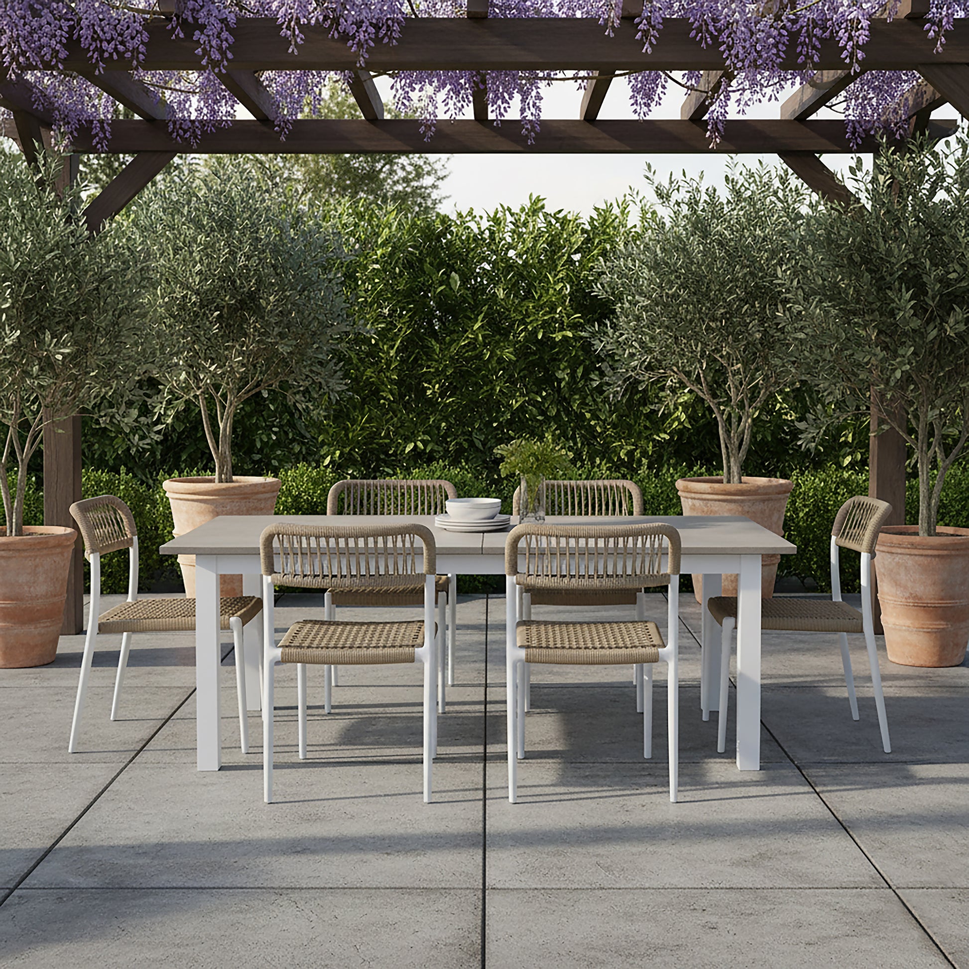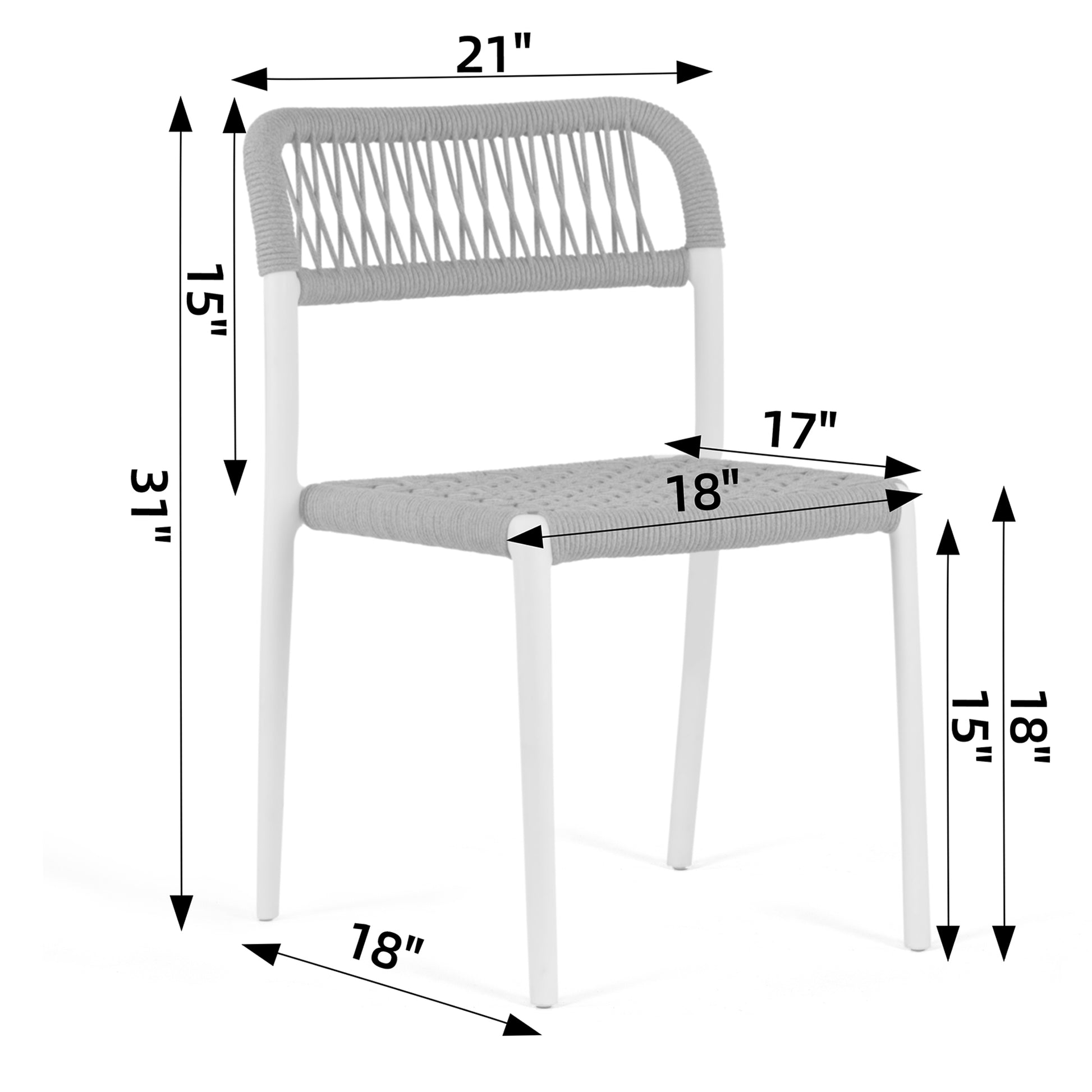The beige woven rope fabric dining chair features a stylish, neutral tone that complements any decor. Its durable plastic frame and legs offer a lightweight, modern design while ensuring stability and easy maintenance. The woven rope upholstery adds a touch of texture and sophistication, making this chair a practical and chic choice for any dining area. Additionally, these chairs feature a stackable design that enables efficient storage while significantly reducing the amount of space required when not in use.