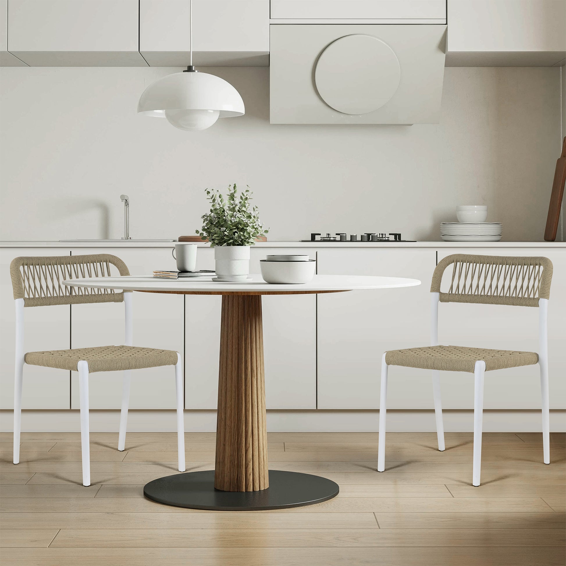 Set of 2 Belen Beige Woven Rope Fabric Dining Chair with Plastic Frame