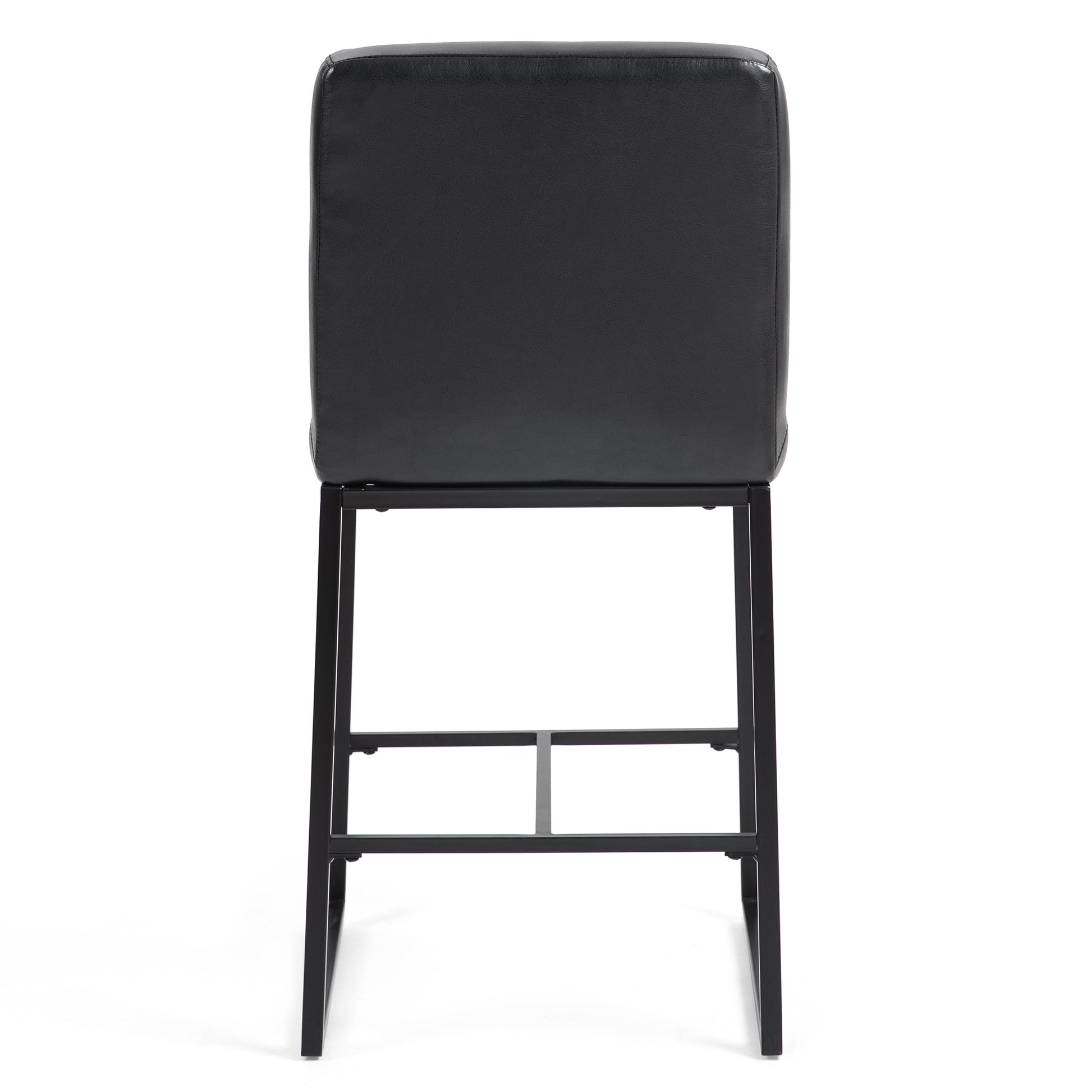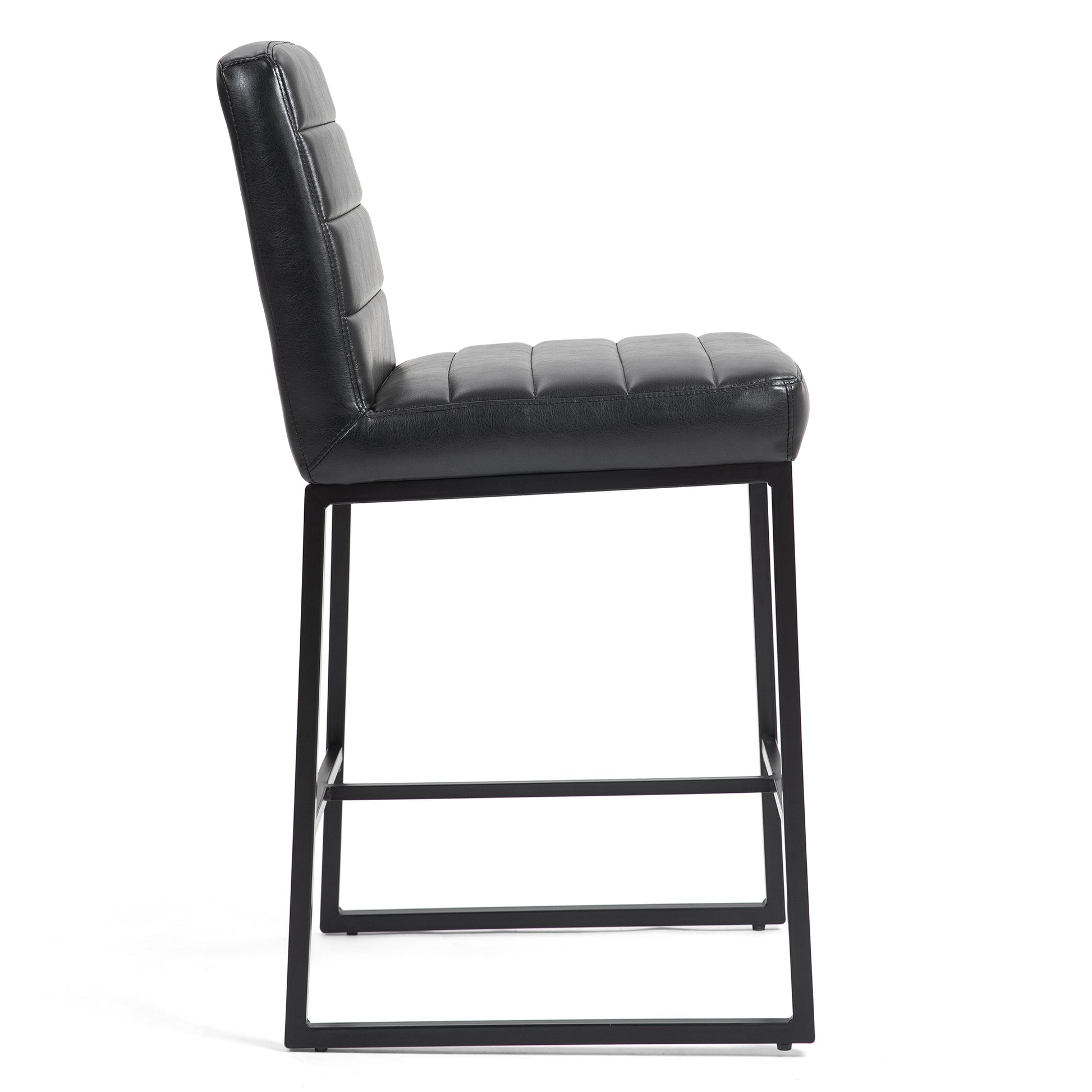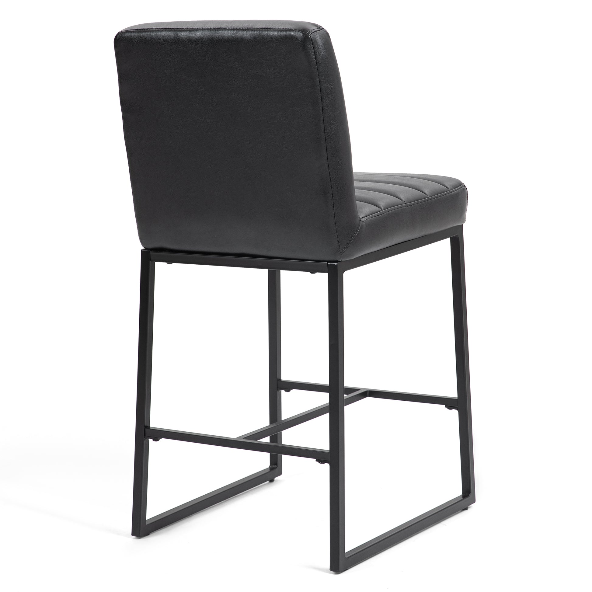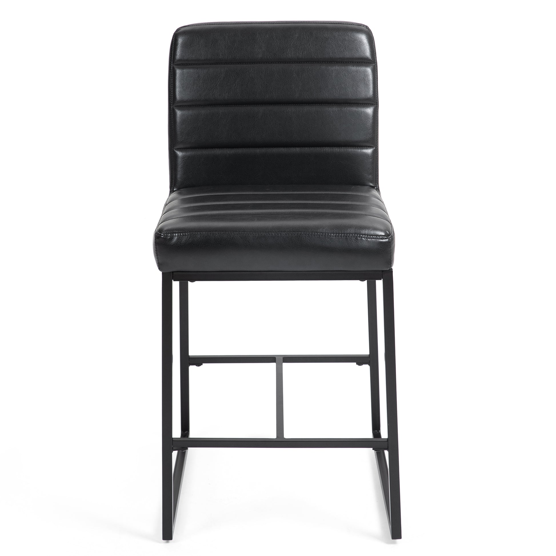 Set of 2 Belisario Black Faux Leather Counter Stool with Black Metal Legs