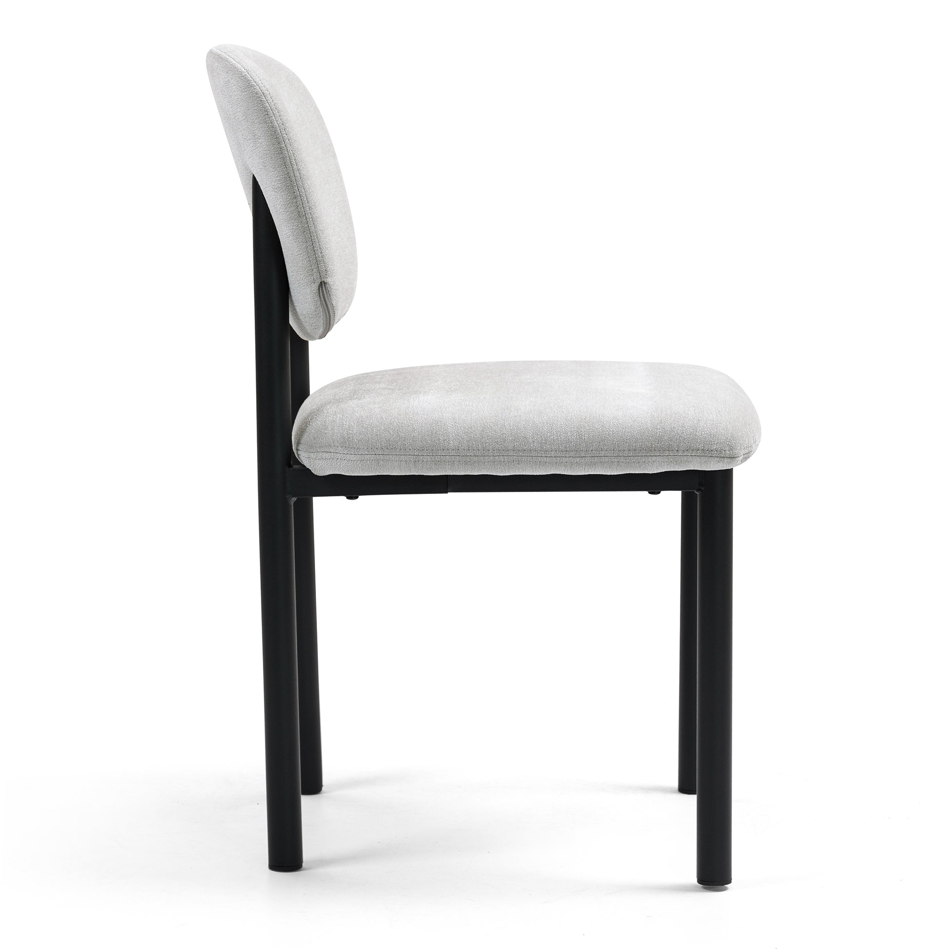 Elevate your dining experience with our beige fabric dining chairs featuring a luxurious and easy-to-clean upholstery. The sleek and modern design is complemented by sturdy iron legs, ensuring durability and style. Perfect for both formal dinners and casual gatherings, these chairs seamlessly blend comfort and sophistication in any dining space.
