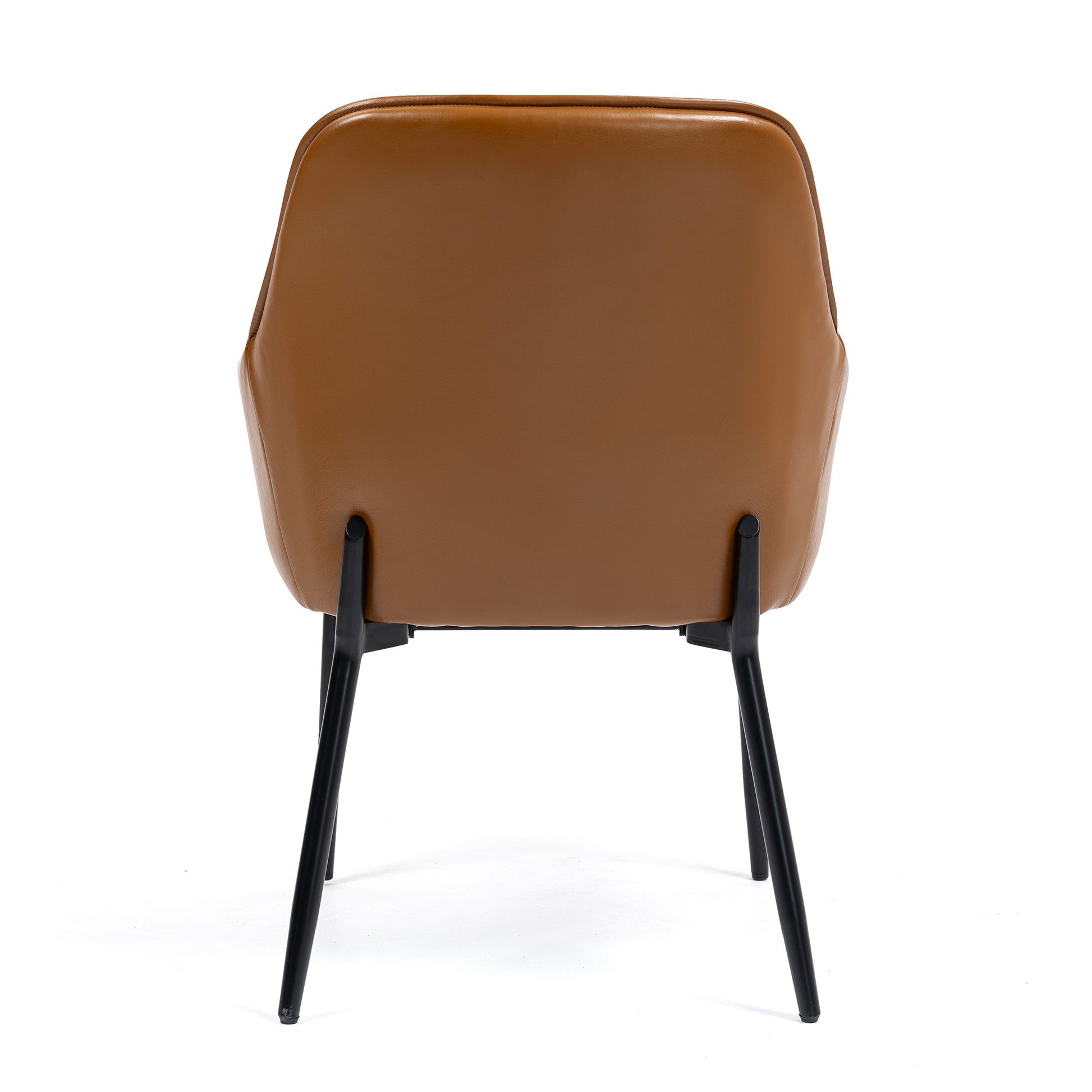 Set of 2 Berenice Light Brown Faux Leather Upholstered Dining Chair with Black Iron Legs