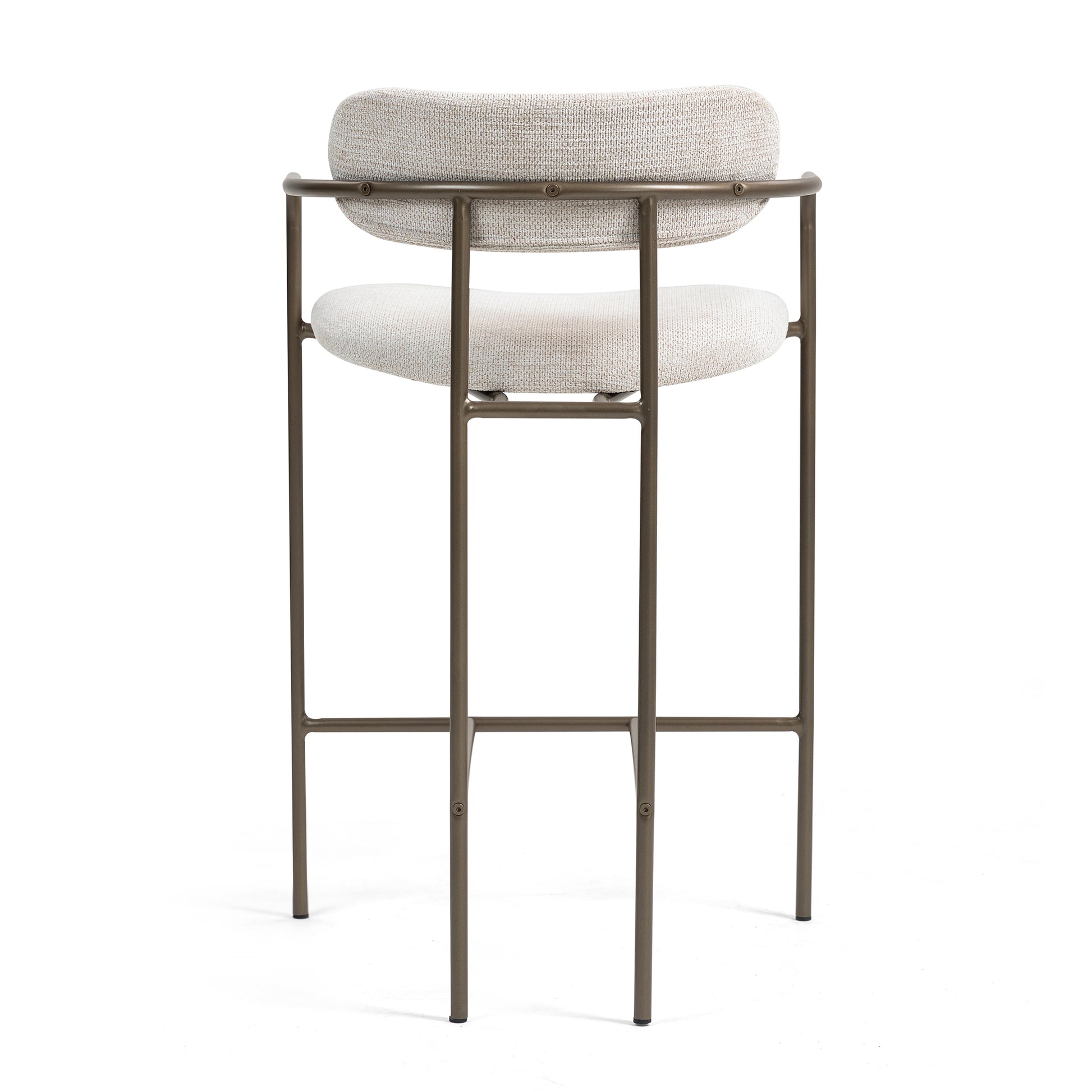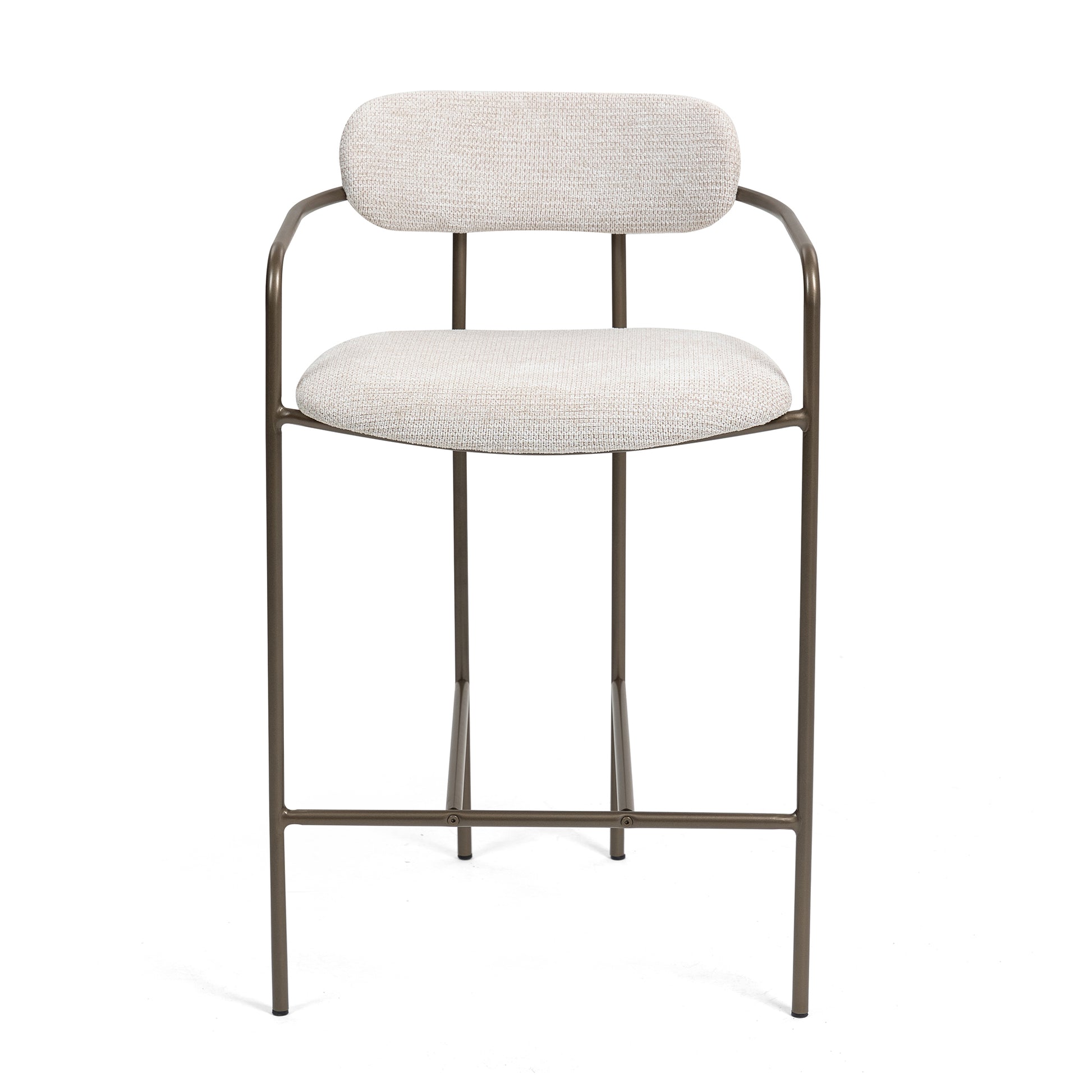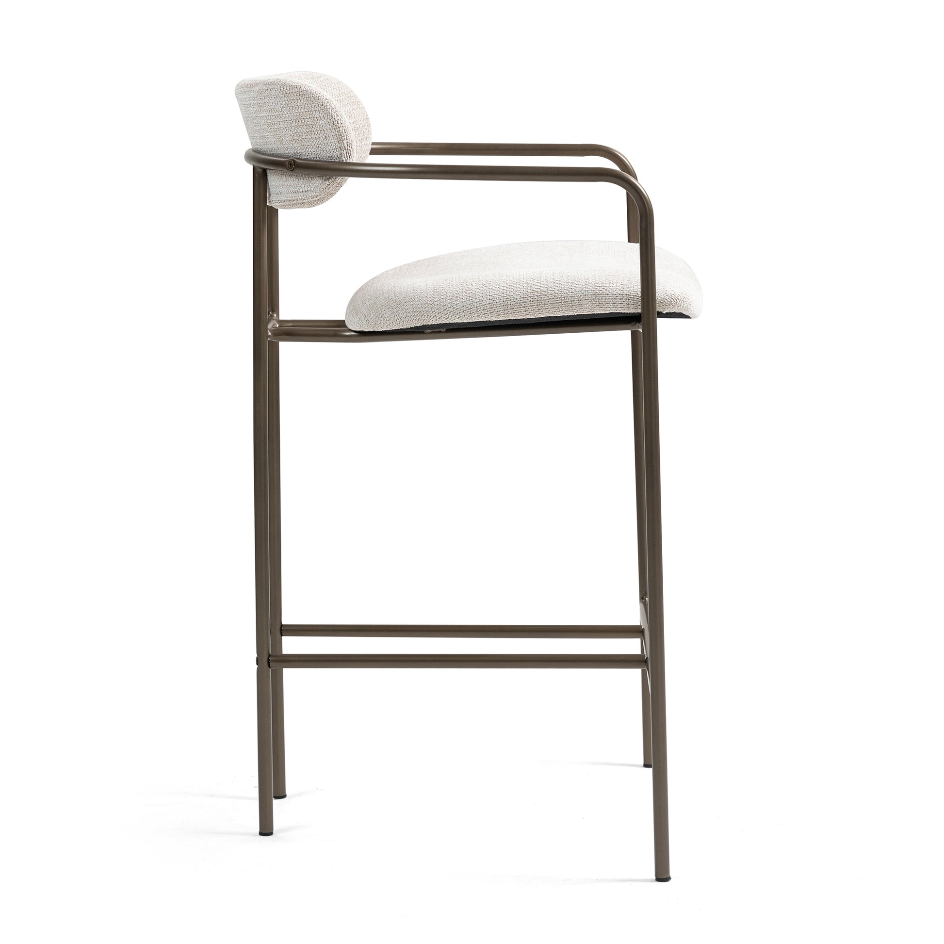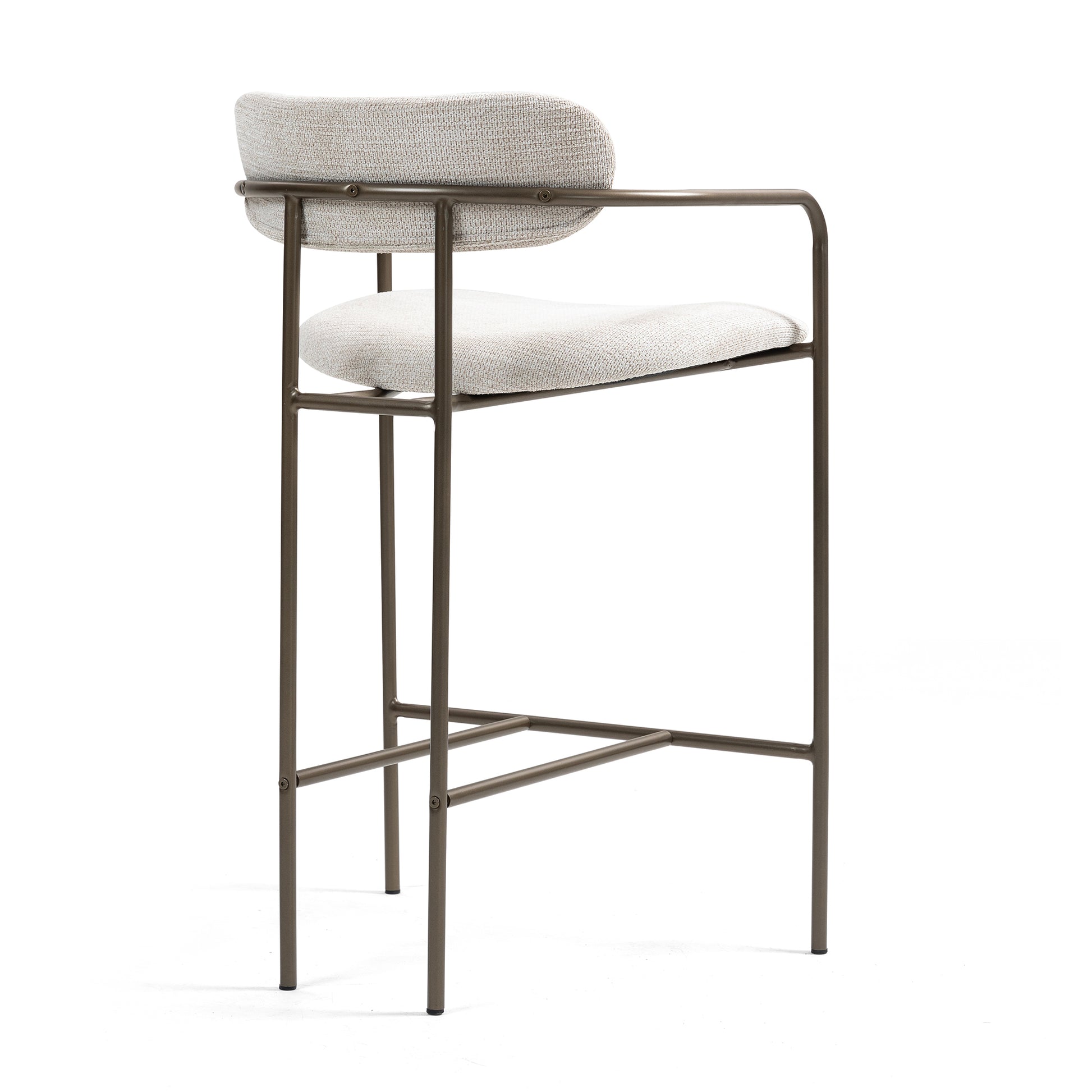 Indulge in comfort and contemporary style with our beige woven upholstered fabric counter stool. Crafted with plush woven fabric for luxurious comfort, it seamlessly merges with any decor. Brown iron arms and legs provide a sleek contrast, adding a touch of modern sophistication to your dining space. Elevate every meal with this chic and versatile seating solution.