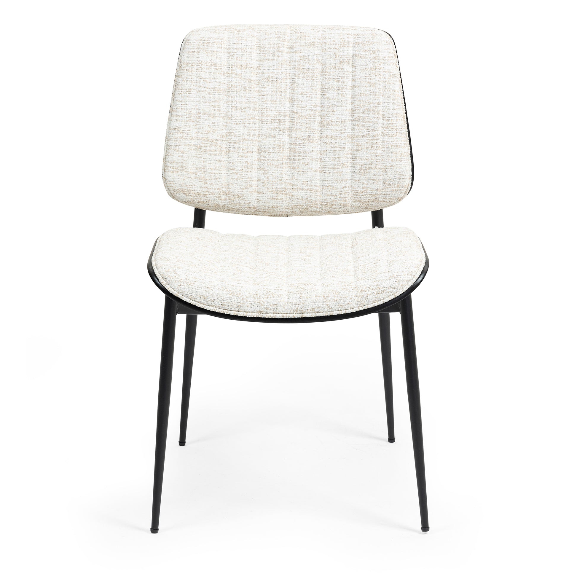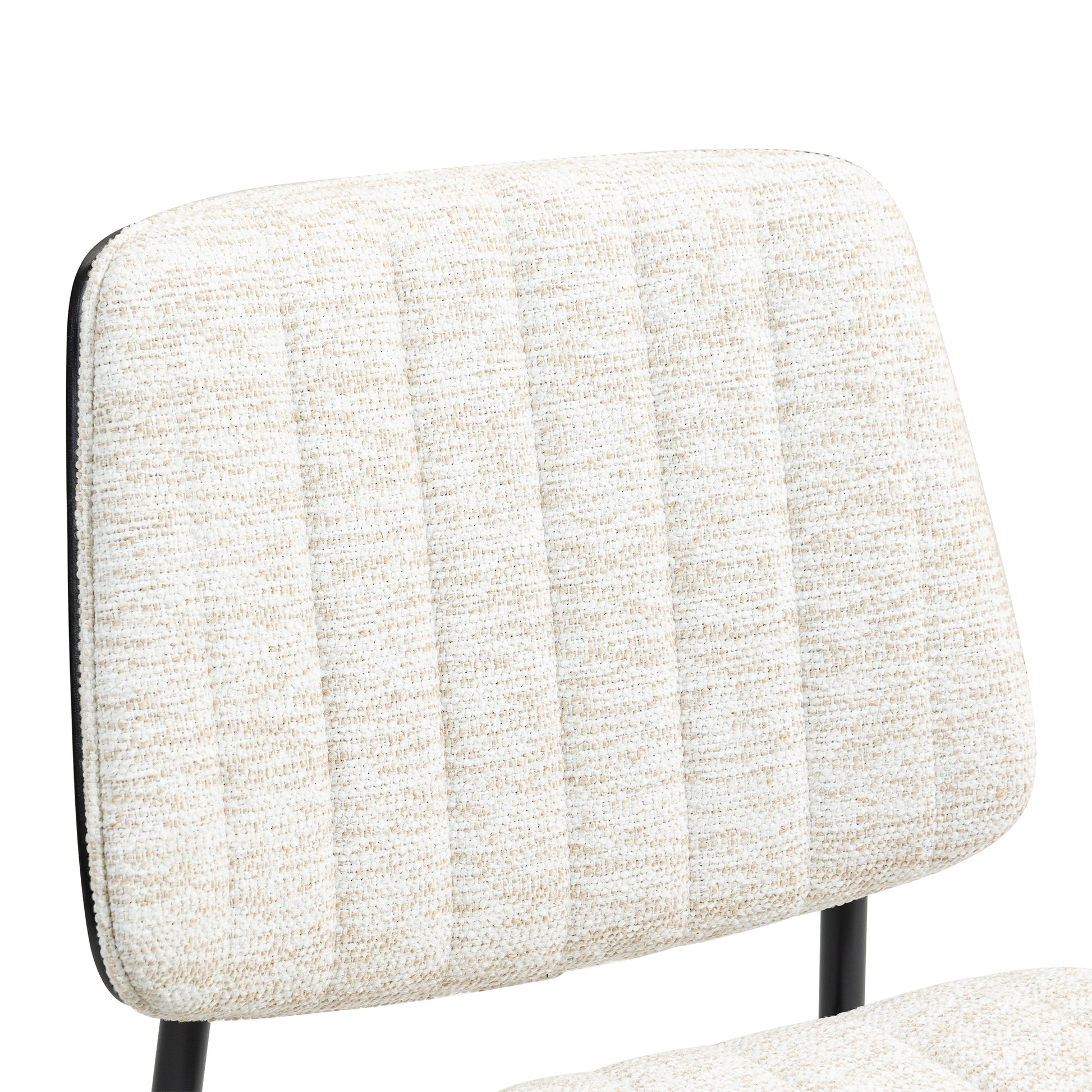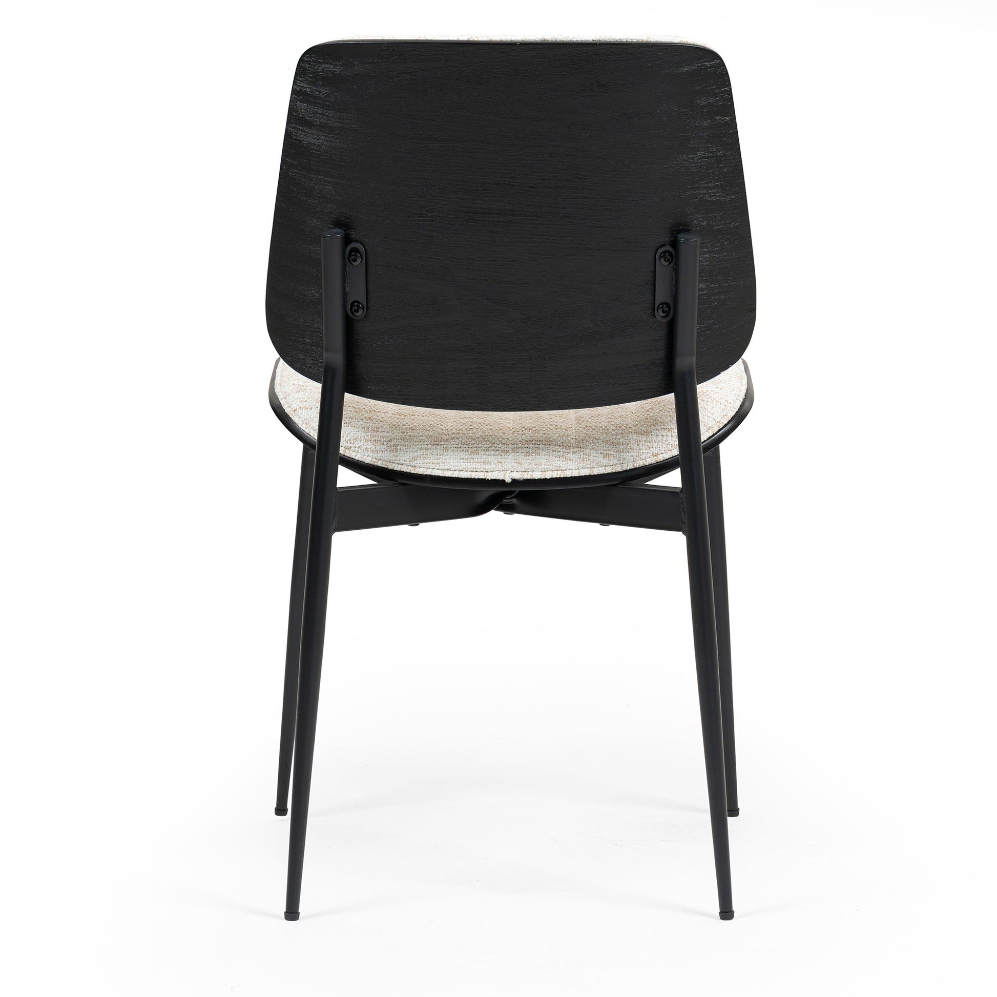 Discover understated elegance with our beige woven fabric dining chair. Crafted with a black washed wood back, it radiates warmth and sophistication. Black metal legs add a touch of modernity and durability, enhancing its timeless appeal. Whether hosting dinner parties or enjoying family meals, indulge in comfort and style. Elevate your dining experience with this exquisite blend of craftsmanship and design.