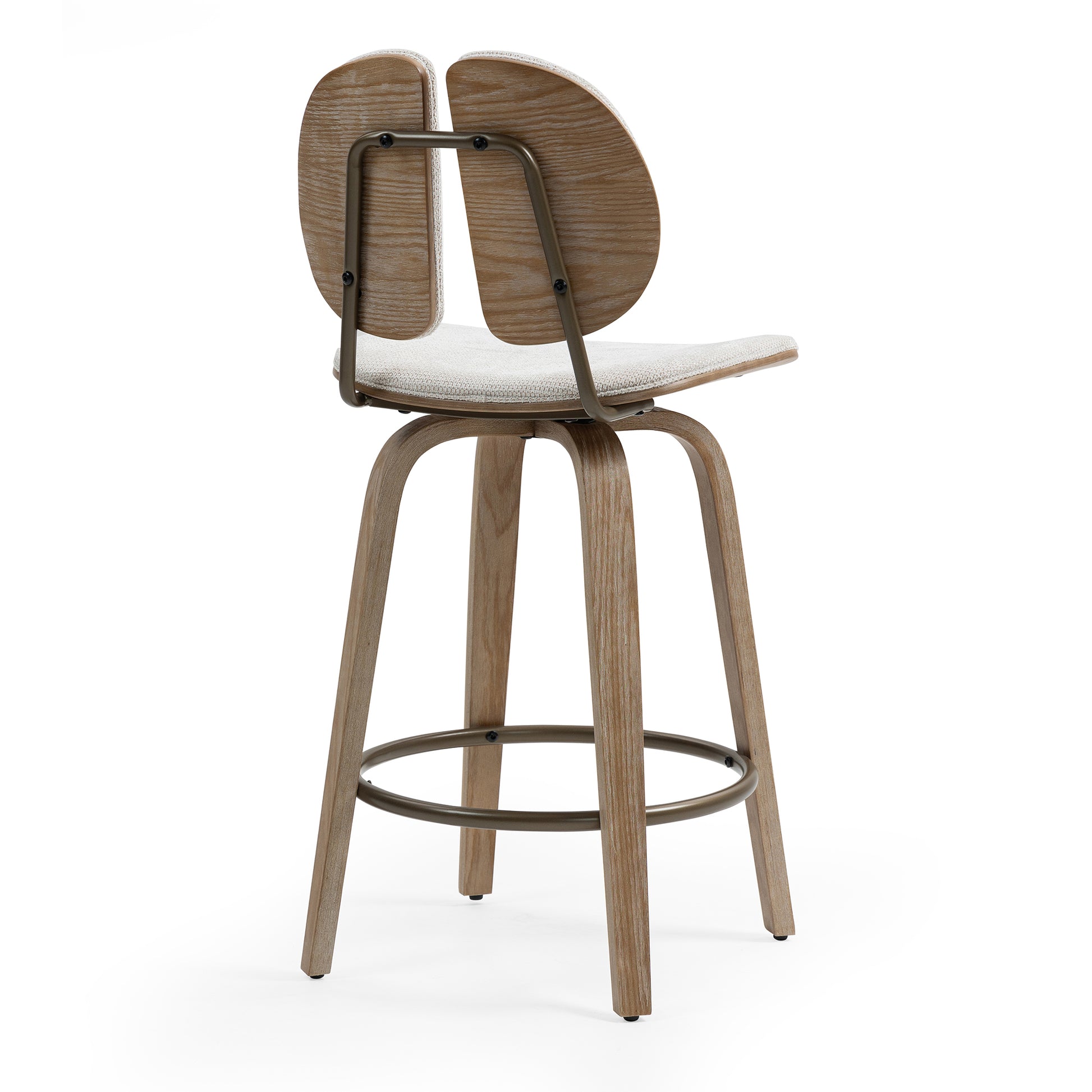 Set of 2 Betrys Beige Washed Woven Fabric Swivel Counter Stool with White Washed Wood Legs