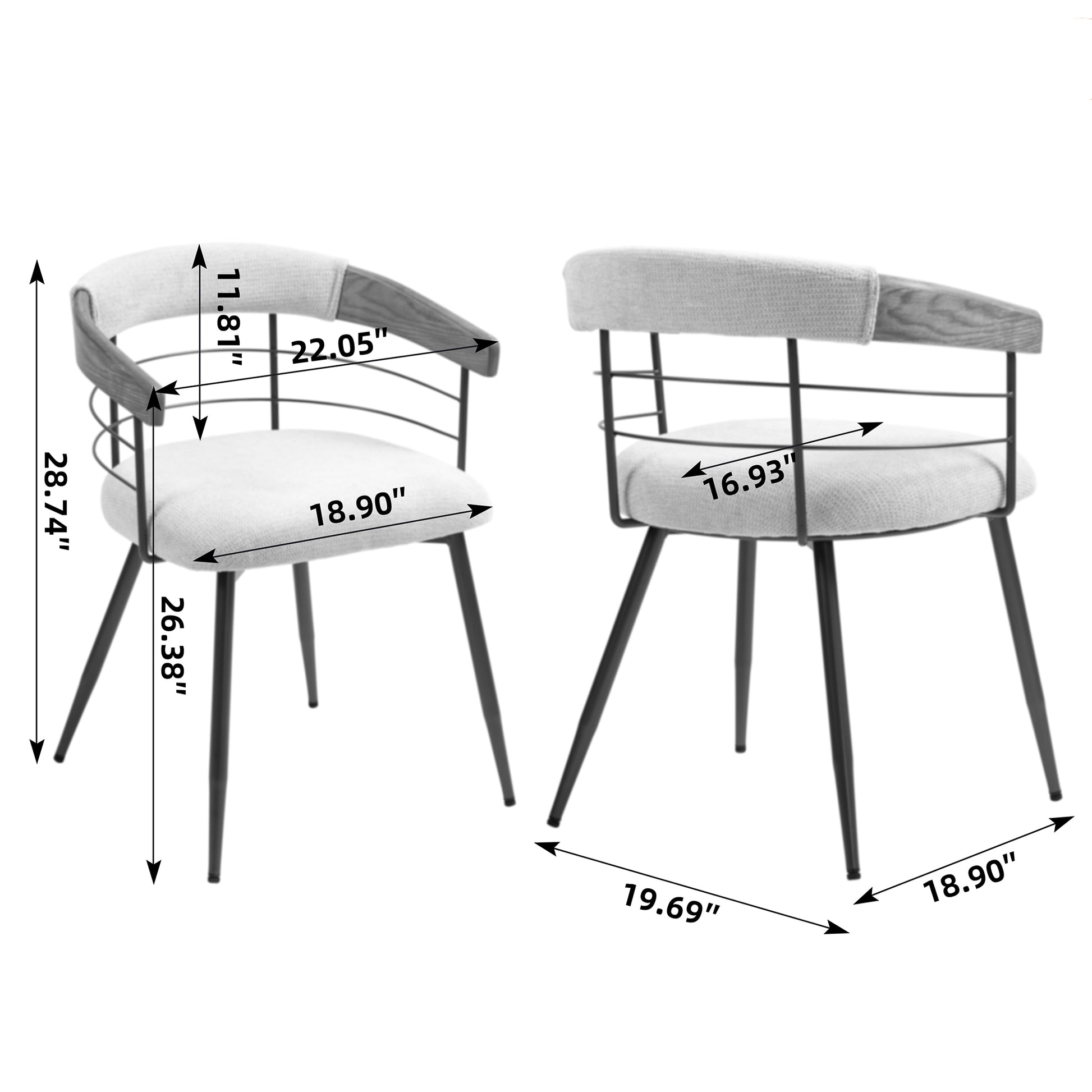 Other Dimensions: Back Dimensions: 18.11"H. Arm to Arm: 22.05"W. Arm to Floor: 26.38"H.