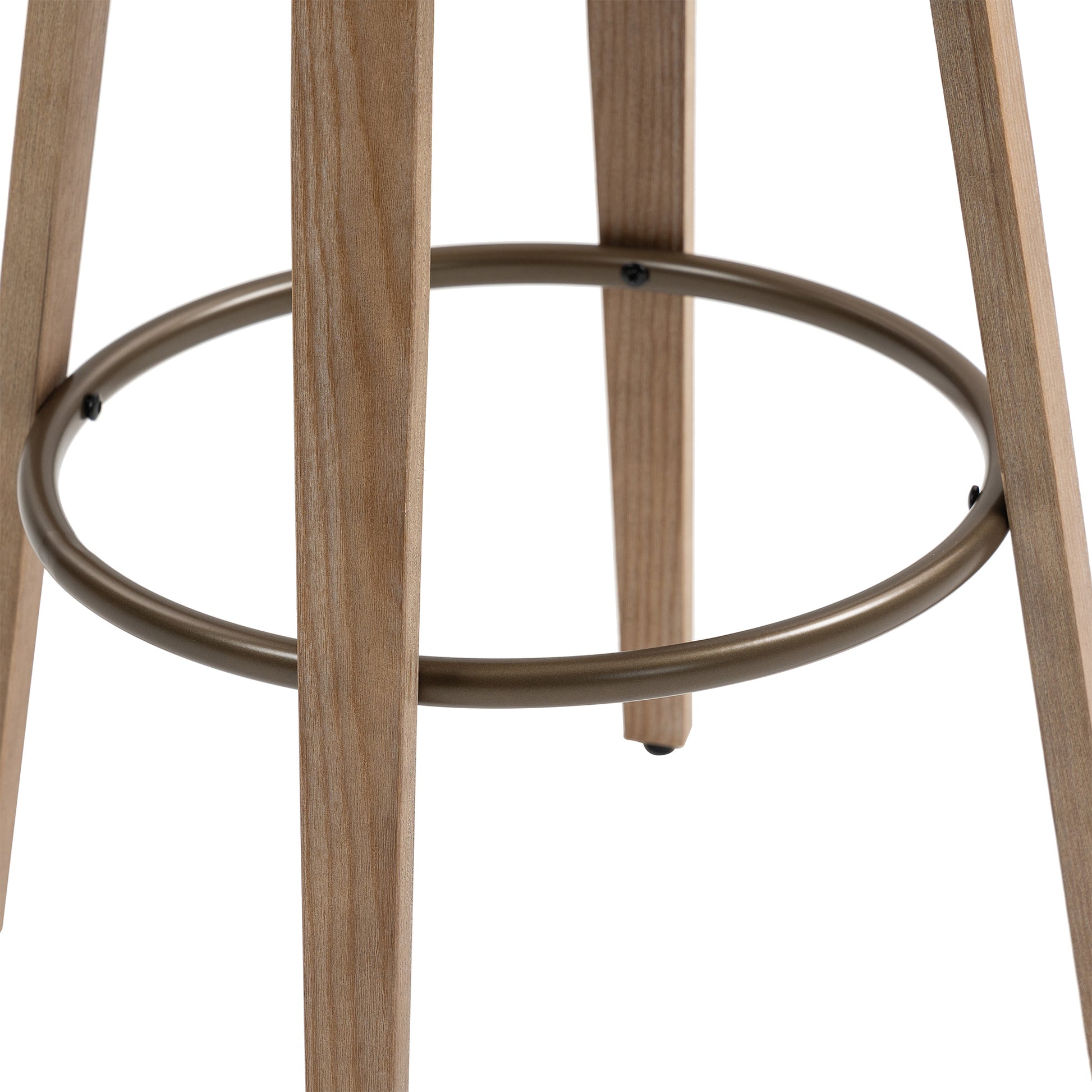 Elevate your dining space with our exquisite beige upholstered fabric bar stool. Embrace the fusion of comfort and elegance with white washed wood legs, exuding warmth and sophistication. Copper iron accent arms and footrest add a modern flair, enhancing its allure. Whether entertaining guests or enjoying a quiet meal, indulge in luxurious comfort and timeless style. Redefine your dining experience with this impeccable piece of furniture.