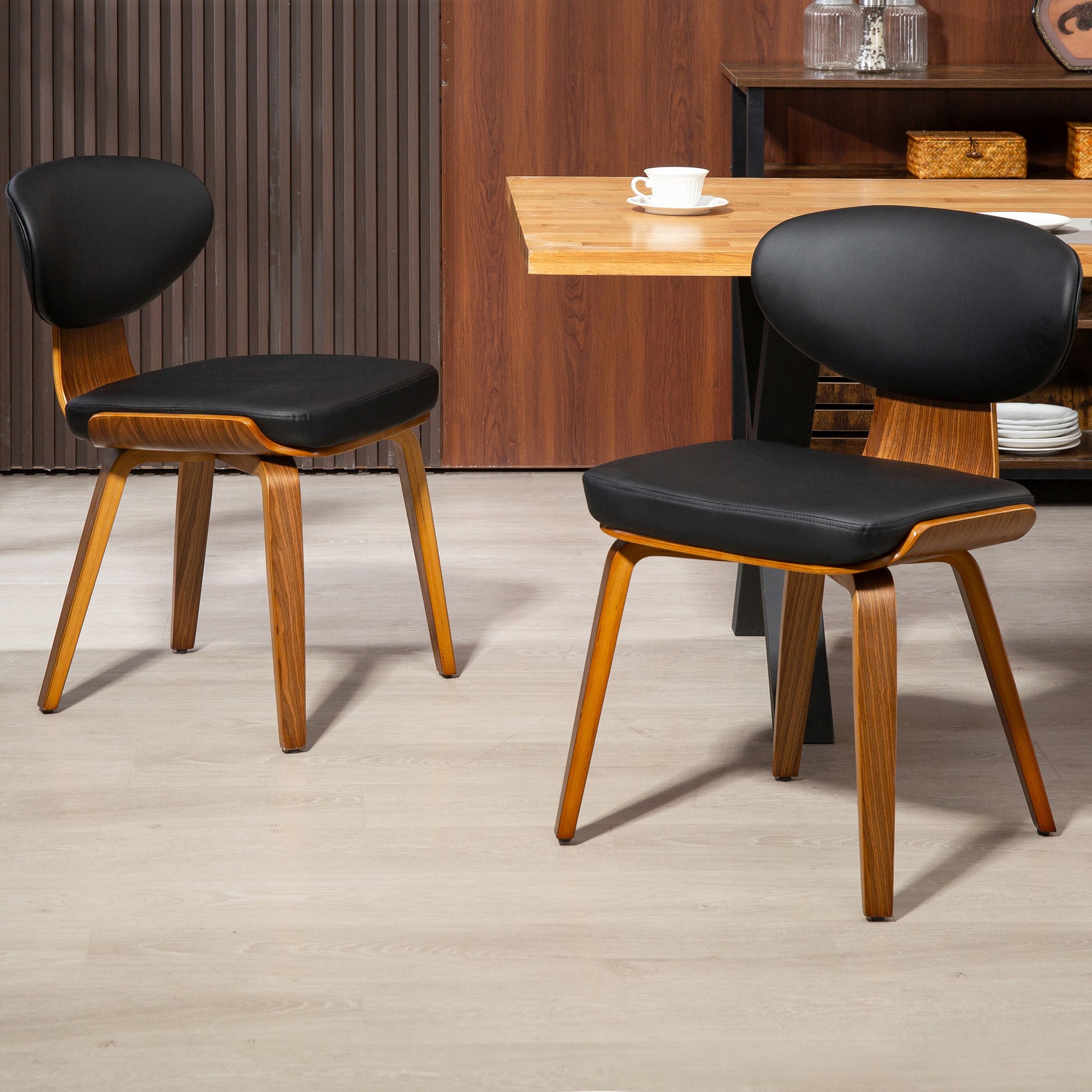 Set of 2 Bettina Black Faux Leather Dining Chair with Walnut Finish Wood Legs