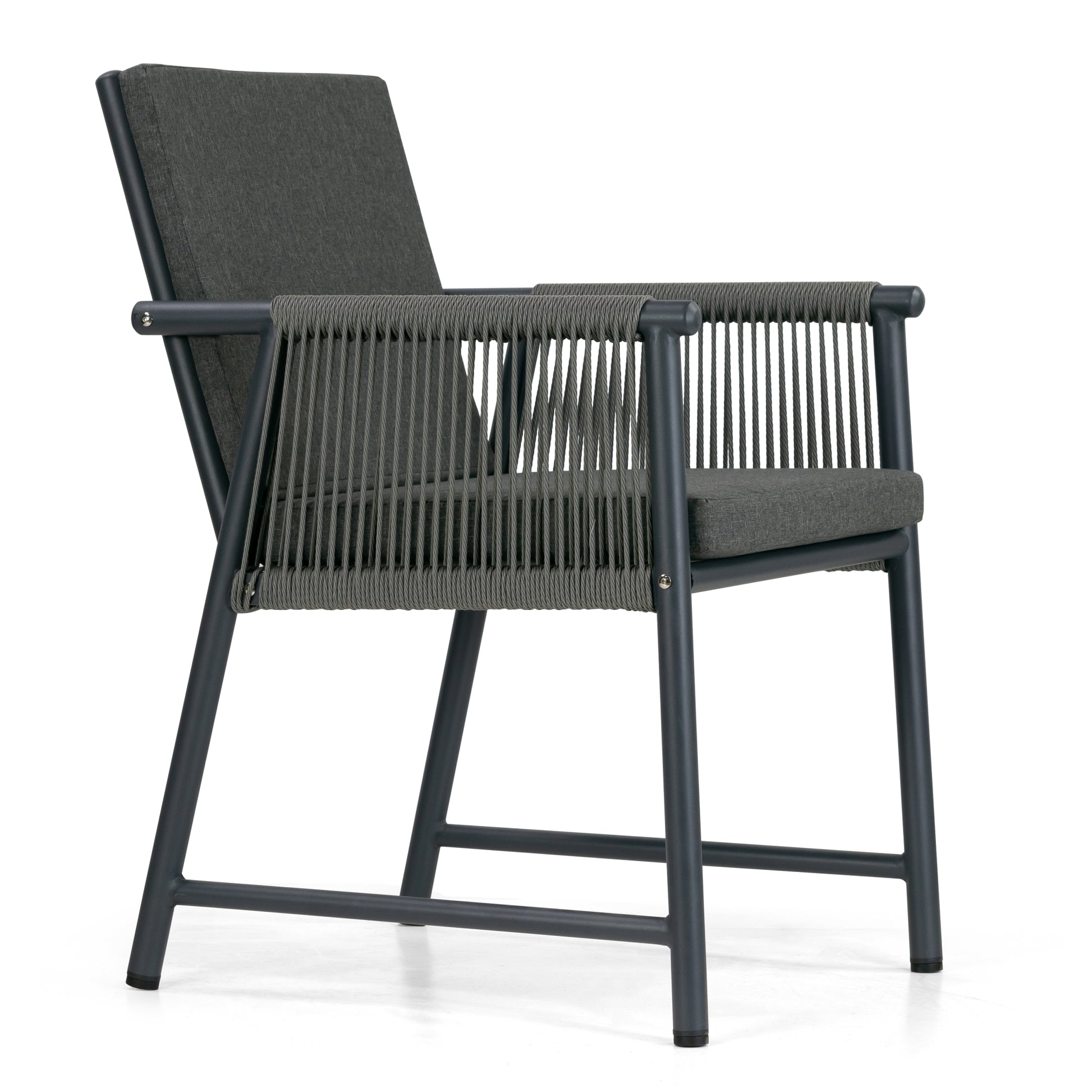 Set of 2 Bianca Grey Outdoor Dining Chair with Hand-Woven Synthetic Rattan Arms