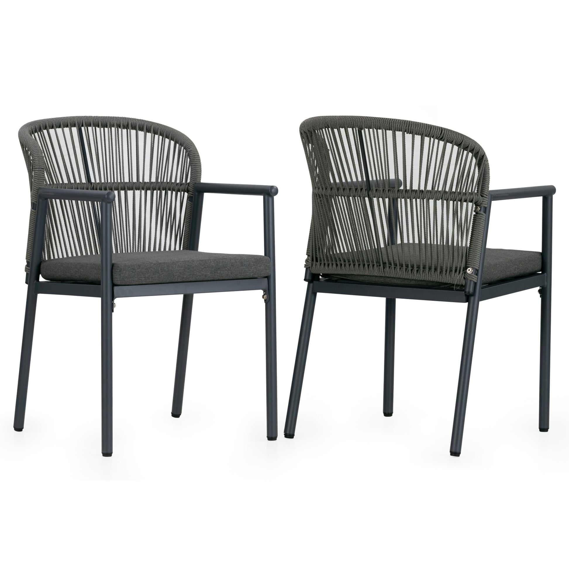 Set of 2 Bina Grey Outdoor Dining Chair with Hand-Woven Synthetic Rattan Back