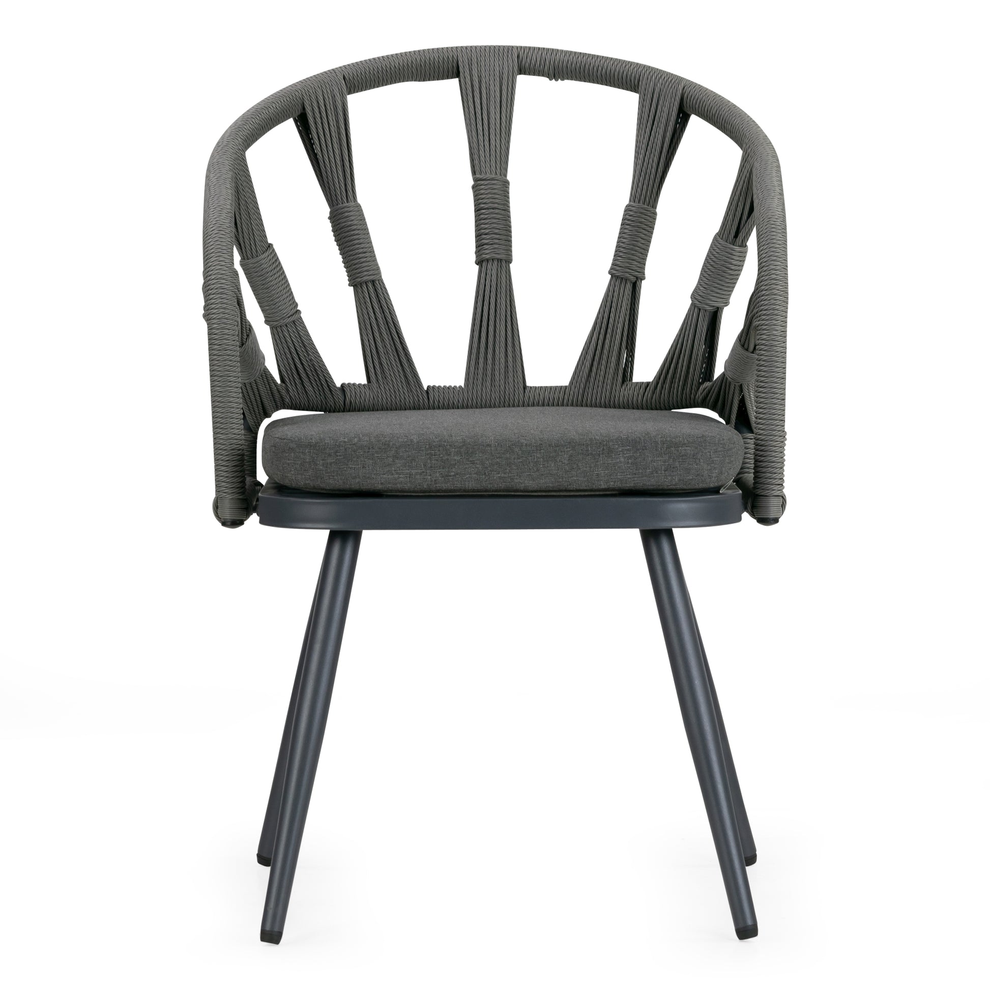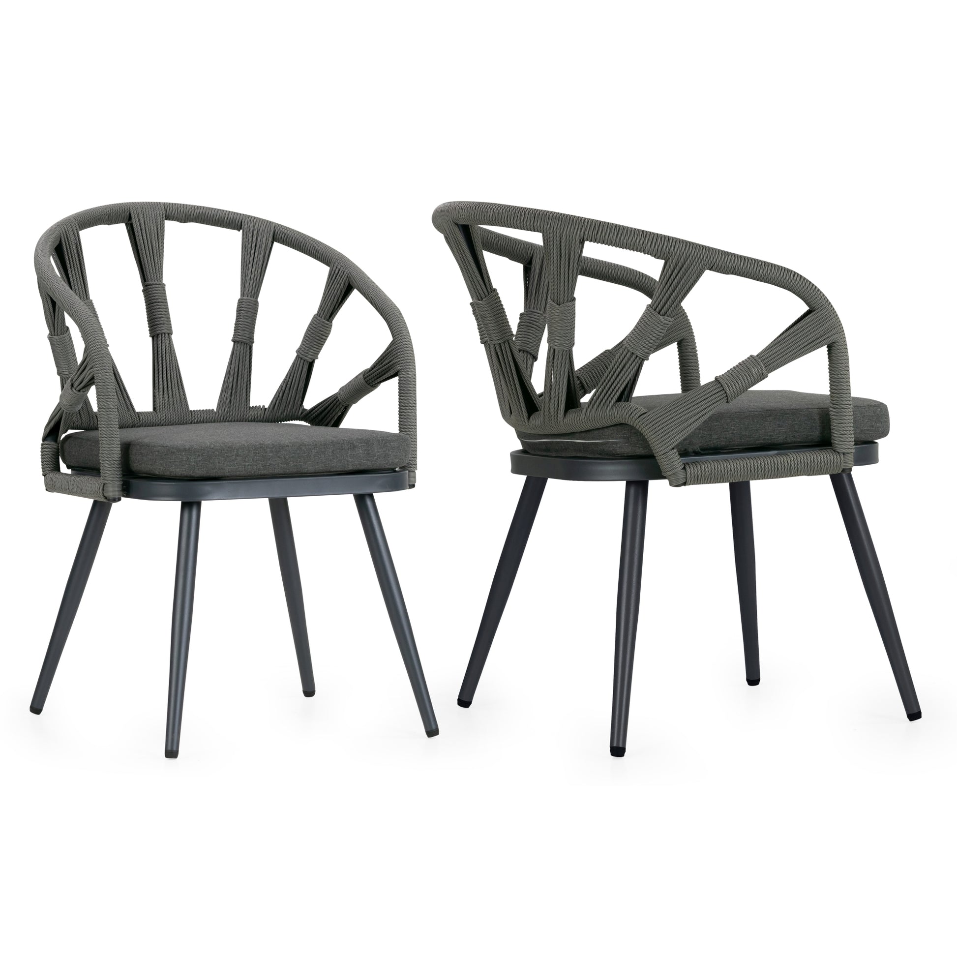 Set of 2 Binda Grey Outdoor Dining Chair with Hand-Woven Back