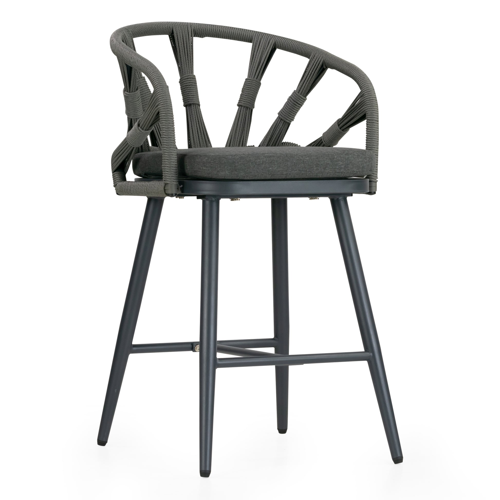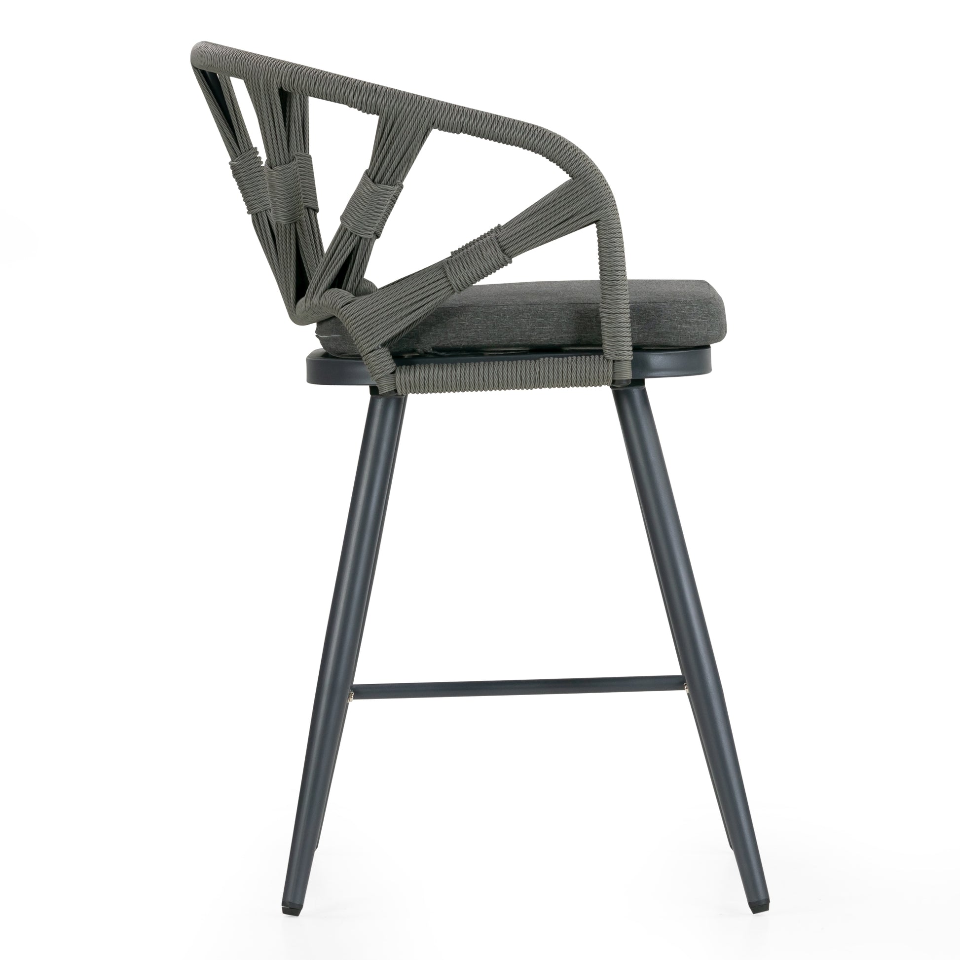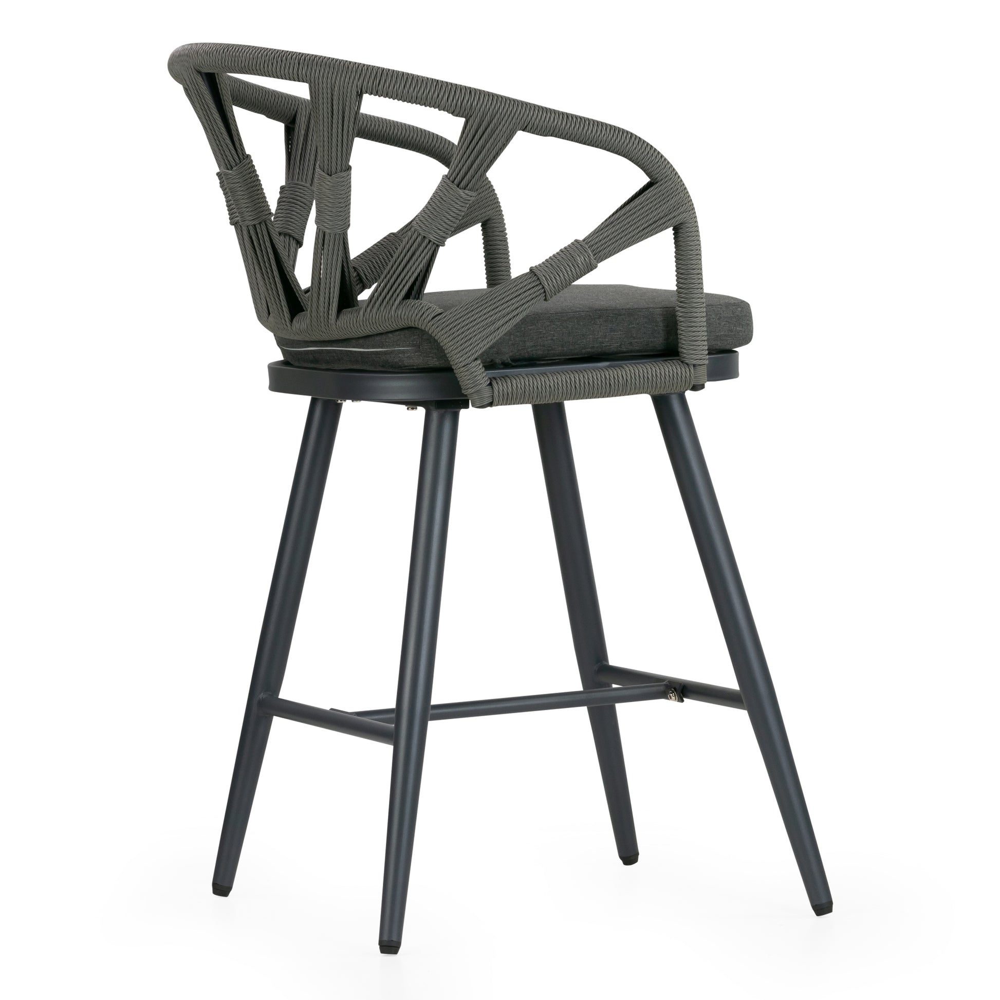 Set of 2 Birre Grey Outdoor Counter Height Stool with Hand-Woven Back