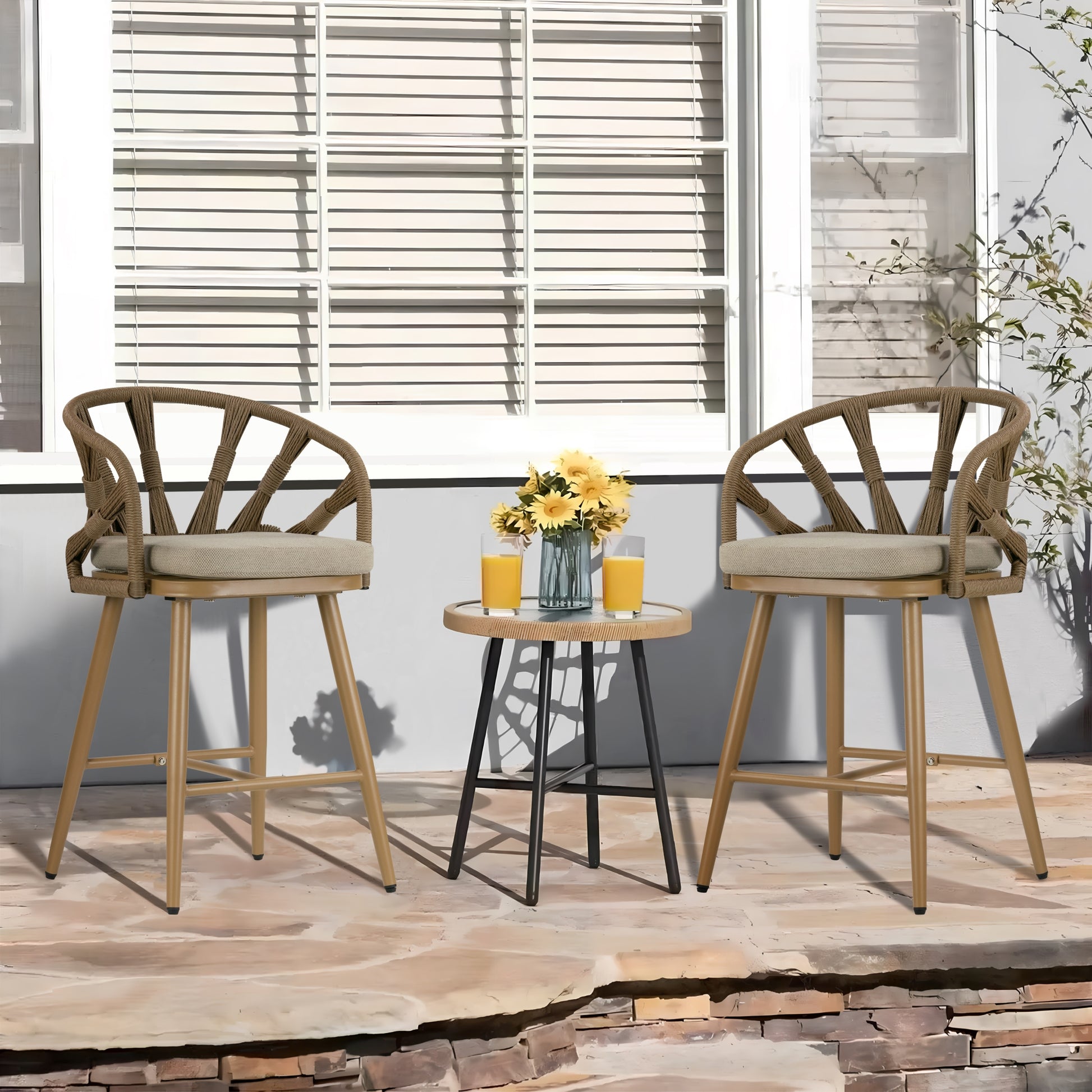 Set of 2 Birre Outdoor Counter Height Stool with Hand-Woven Back
